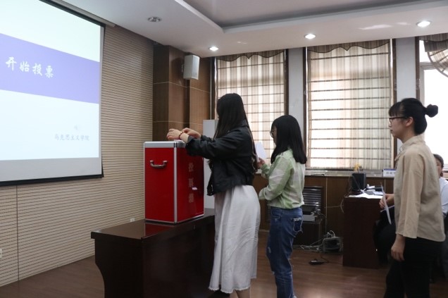 投票完毕后,由计票人和监票人当场唱票,经差额选举,本次研究生代表大会,共选出第一届研究生会委员5名,分别是孙倩颖、张龙霞、李瑞娜、高旻、王帅。