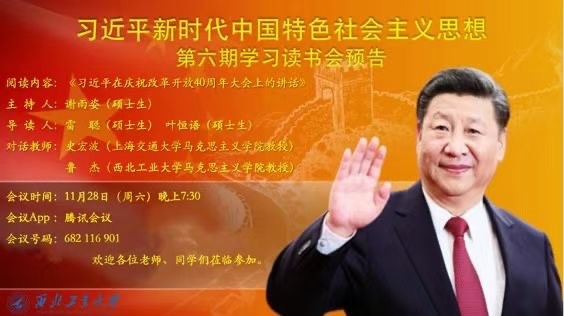 PP电子游戏网站PP电子游戏网站习近平新时代中国特色社会主义思想学习读书会至今已经举行了六期,师生们共同感受到阅读有助于提升自身的素养与思想,坚定了做有学术担当的新时代学者的信心。我们相信,全体师生共同努力,一定会把习近平新时代中国特色社会主义思想学习读书会举办的越来越好,将其打造成为马克思主义理论研究方面具有学术影响的西工大品牌。