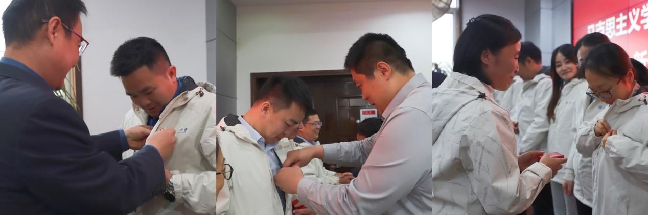 会议最后,学院党委副书记李刚及导师代表张云龙、杨冰郁为同等学力博士新生佩戴院徽并合影留念。