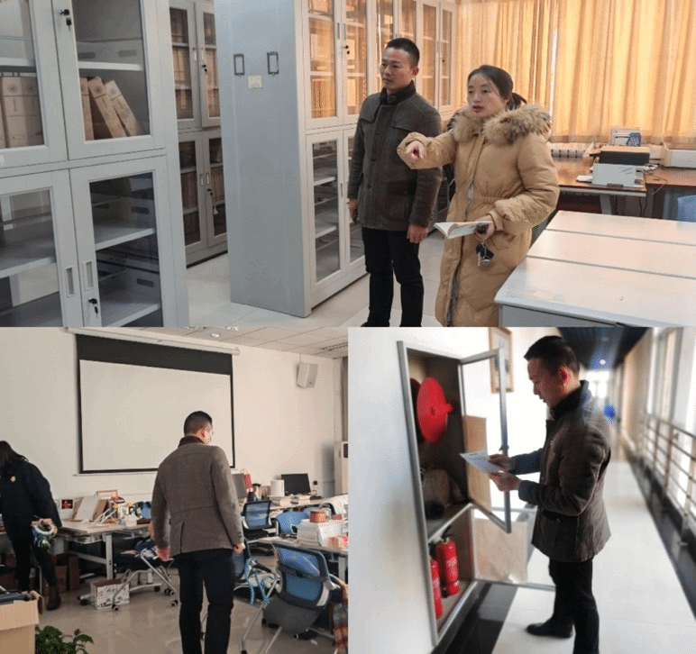 1月19日学院党委副书记李刚、办公室主任郭雅楠、安全员、资源保障秘书等一行4人进行节前安全检查工作;重点检查了学院楼会议室、档案室、图书资料室、自习室、办公室以及楼道区域的卫生状况、排除了室内用电安全隐患。