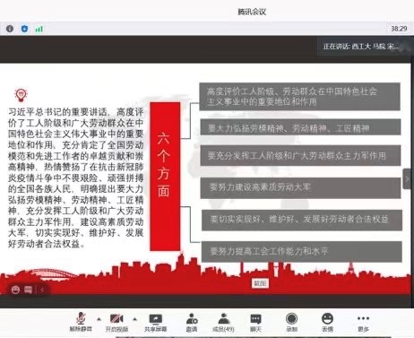 习近平总书记强调,社会主义是干出来的,新时代是奋斗出来。劳动模范是民族的精英、人民的楷模,是共和国的功臣。我国是人民当家作主的社会主义国家,党和国家始终坚持全心全意依靠工人阶级方针,始终高度重视工人阶级和广大劳动群众在党和国家事业发展中的重要地位,始终高度重视发挥劳动模范和先进工作者的重要作用。为了深入学习习近平总书记在全国劳动模范和先进工作者表彰大会上的重要讲话精神,2020年12月12日,PP电子游戏网站PP电子游戏网站习近平新时代中国特色社会主义思想学习读书会第七期活动主题重点围绕《习近平在全国劳动模范和先进工作者表彰大会上的重要讲话》进行展开。此次活动由PP电子官网硕士生谢雨姿主持,中央民族大学PP电子游戏网站教授、学科点主任、研究生导师刘树宏老师,PP电子游戏网站PP电子游戏网站博士生导师鲁杰教授作为对话教师应邀参加。