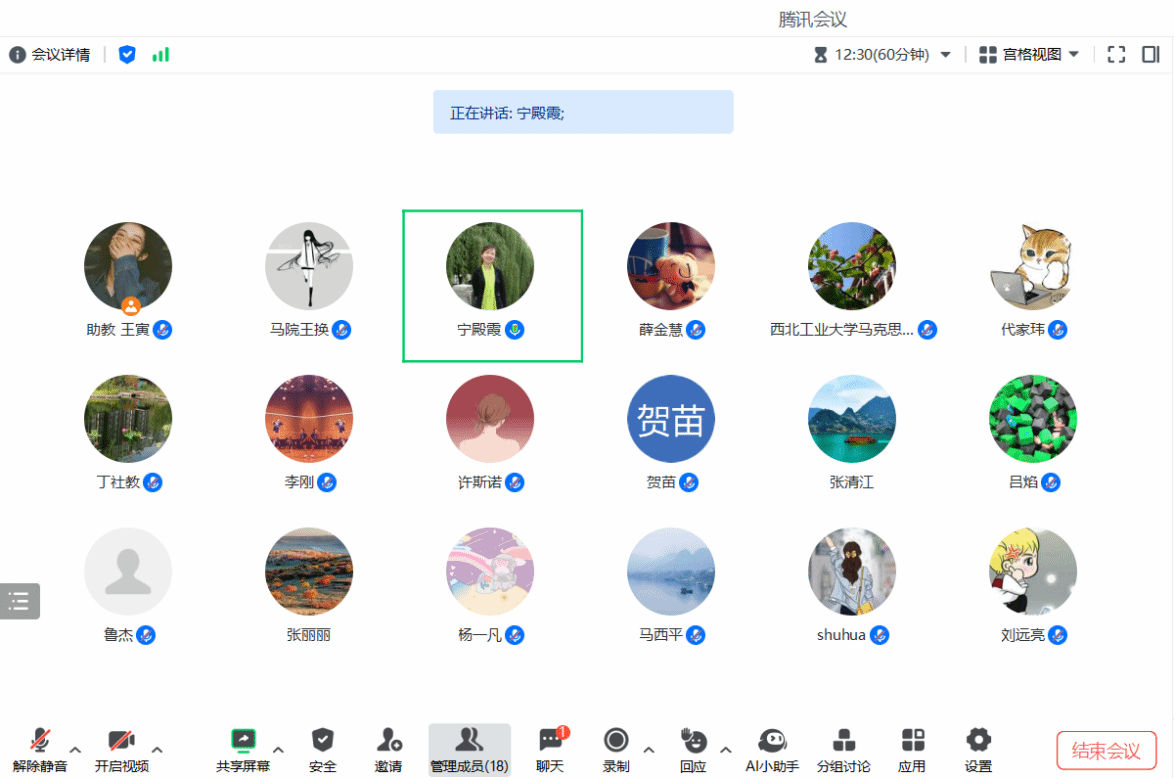 2024年4月25日晚上,《习近平新时代中国特色社会主义思想概论》(以下简称《概论》)课程改革推进会于线上腾讯会议举办。20多名任课教师共同参加本次推进会,PP电子游戏网站《概论》课教研室主任宁殿霞副教授主持会议。