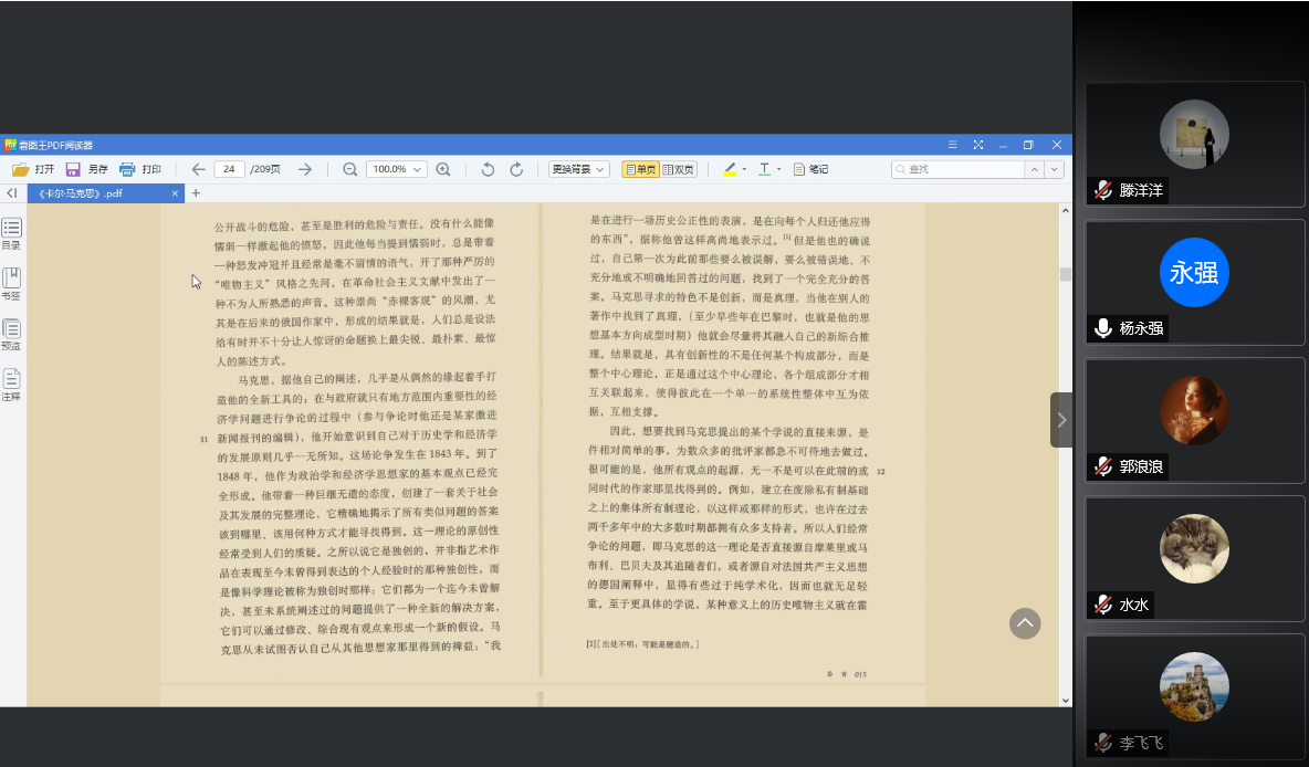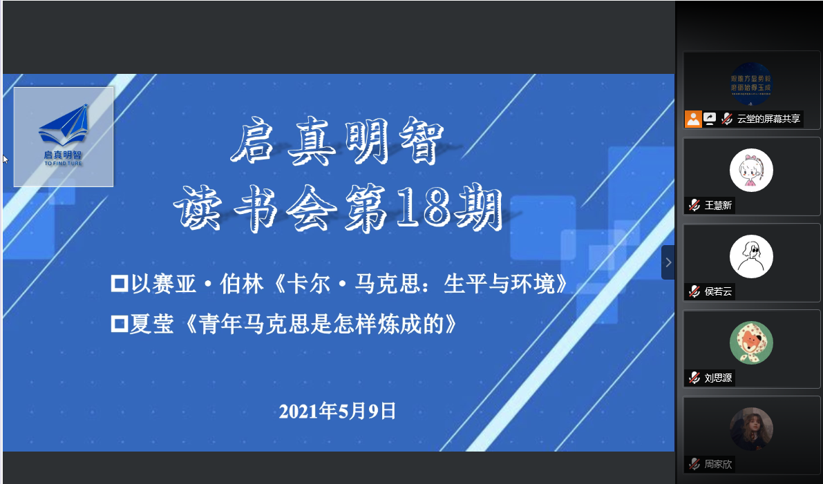 5月9日晚7点,启真明智读书会第18期以线上的方式顺利举行。PP电子游戏网站PP电子游戏网站张云龙教授与杨永强老师参加了此次活动,与同学们一起阅读以赛亚·伯林的传记作品《卡尔·马克思:生平与环境》,本次读书会阅读了书中第一章节的内容。