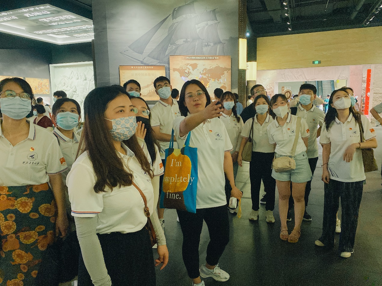 在参观过程中,实践队成员有感而发,对习近平总书记在庆祝中国共产党成立100周年大会上的讲话展开热议。滕洋洋表示:新时代的中国青年要以实现中华民族伟大复兴为己任,增强做中国人的志气、骨气、底气,不负时代,不负韶华,不负党和人民的殷切期望!杨颖萱表示:在聆听了习近平总书记的讲话后,深刻感受到了当代青年所肩负的使命,愿我们所有青年心中有信仰,脚下有力量。程岩表示:我们是改革中的一代,我们是开创未来的一代,新世纪祖国的建设,离不开党的坚强领导,也离不开青年一代的创造和奋斗!