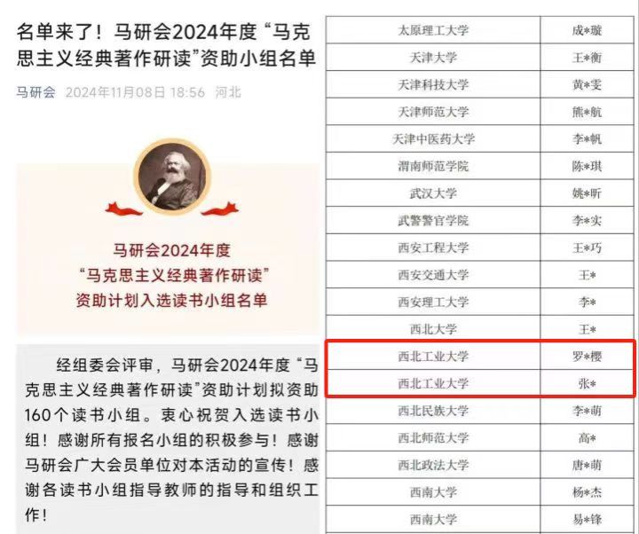 2024年11月8日,经中国高等教育学会马克思主义研究分会(以下简称“马研会”)组委会评审,公布了马研会2024年度 “马克思主义经典著作研读”资助计划拟资助160个读书小组名单。PP电子游戏网站PP电子游戏网站“习近平新时代中国特色社会主义思想学习读书会”、《〈政治经济学批判〉序言·导言》读书小组成功入选读书小组资助计划,将获得为期一年的活动资助和学习指导。