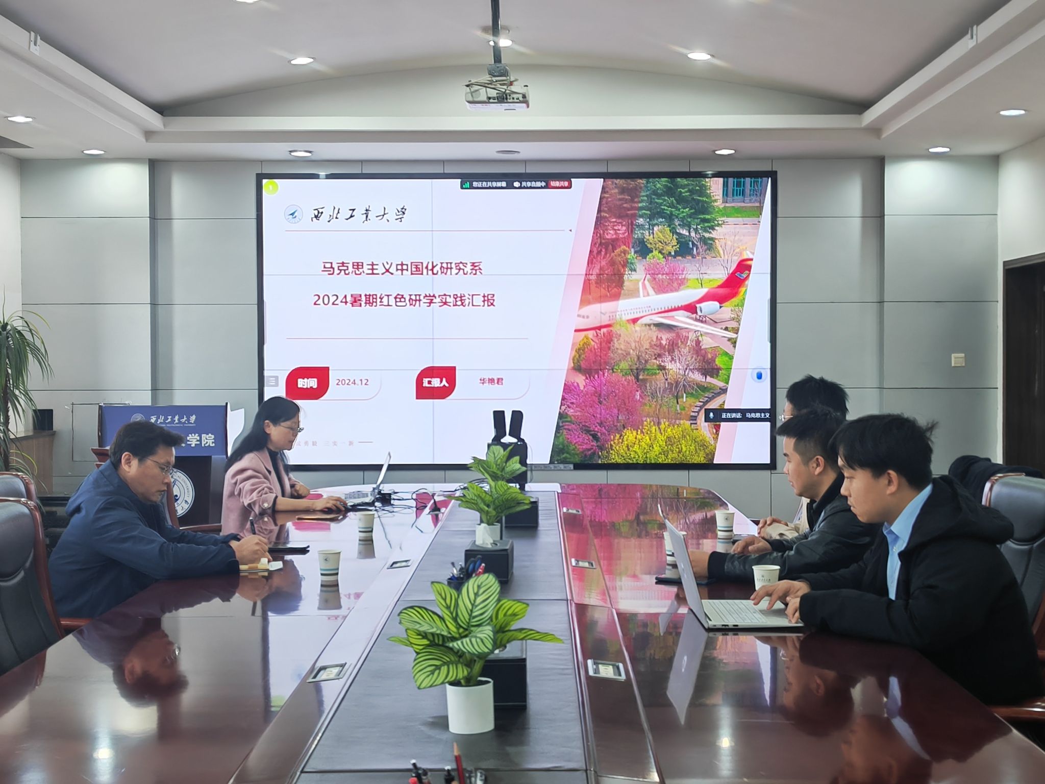 此次活动由马克思主义中国化研究系教学主任华艳君主持。华艳君代表所在团队就赴新疆维吾尔自治区伊犁哈萨克自治州直属县市调研铸牢中华民族共同体意识,中国近现代史基本问题研究系教学主任房小捷代表所在团队就赴甘肃、四川两省相关州、县、市调研长征精神和抗震救灾精神,博士研究生汪毅代表所在团队就赴上海市调研“推动思政课建设内涵式发展”分别进行了汇报。参与师生充分展示了收集的文献、图片、视频等开展思政课教学的鲜活一手素材。马克思主义基本原理教学主任杨永强、德法与形势政策系主任胡建发等与会同志就三个团队的实践研学进行了交流讨论。