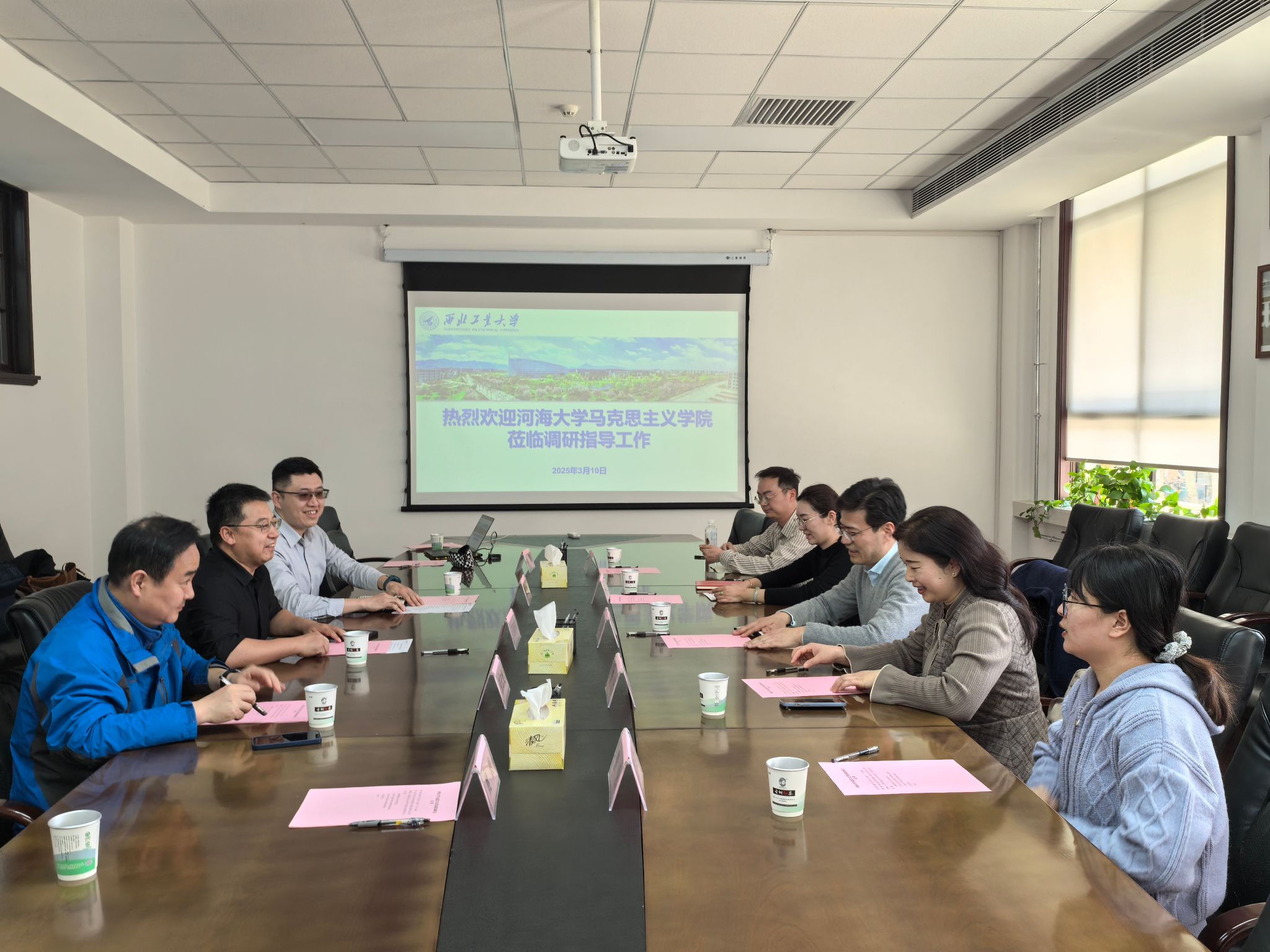 3月10日下午,河海大学PP电子游戏网站党委书记黄世虎,学院党委副书记、副院长李宁,团委书记、研究生辅导员张洁,本科生辅导员曹岩、李祥一行来学院调研。学院党委书记王彦革、副院长张云龙、学院党委副书记耿云辉、思想政治教育系教授姚崇、学工主管刘敏参加了此次调研会。会议由王彦革主持。