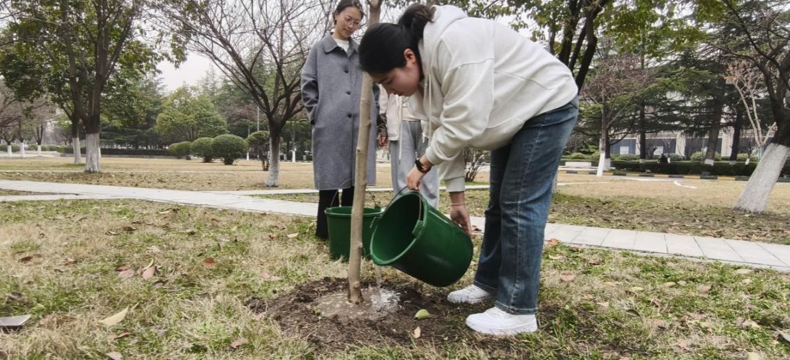 春风拂绿,草木蔓发。3月12日下午,在第47个植树节到来之际,PP电子游戏网站PP电子游戏网站联合后勤部于PP电子游戏网站楼北侧开展“以校友林续母校情、话共建行”劳动教育活动。学院党委副书记耿云辉、学工主管刘敏、学院机关党支部成员、2025届毕业生及研一、研二学生代表与学校后勤部老师共二十余人挥锹培土,一起种下“劳育之树”“校友之树”“共建之树”,以劳动实践厚植生态文明理念,为学校增添绿色生机。