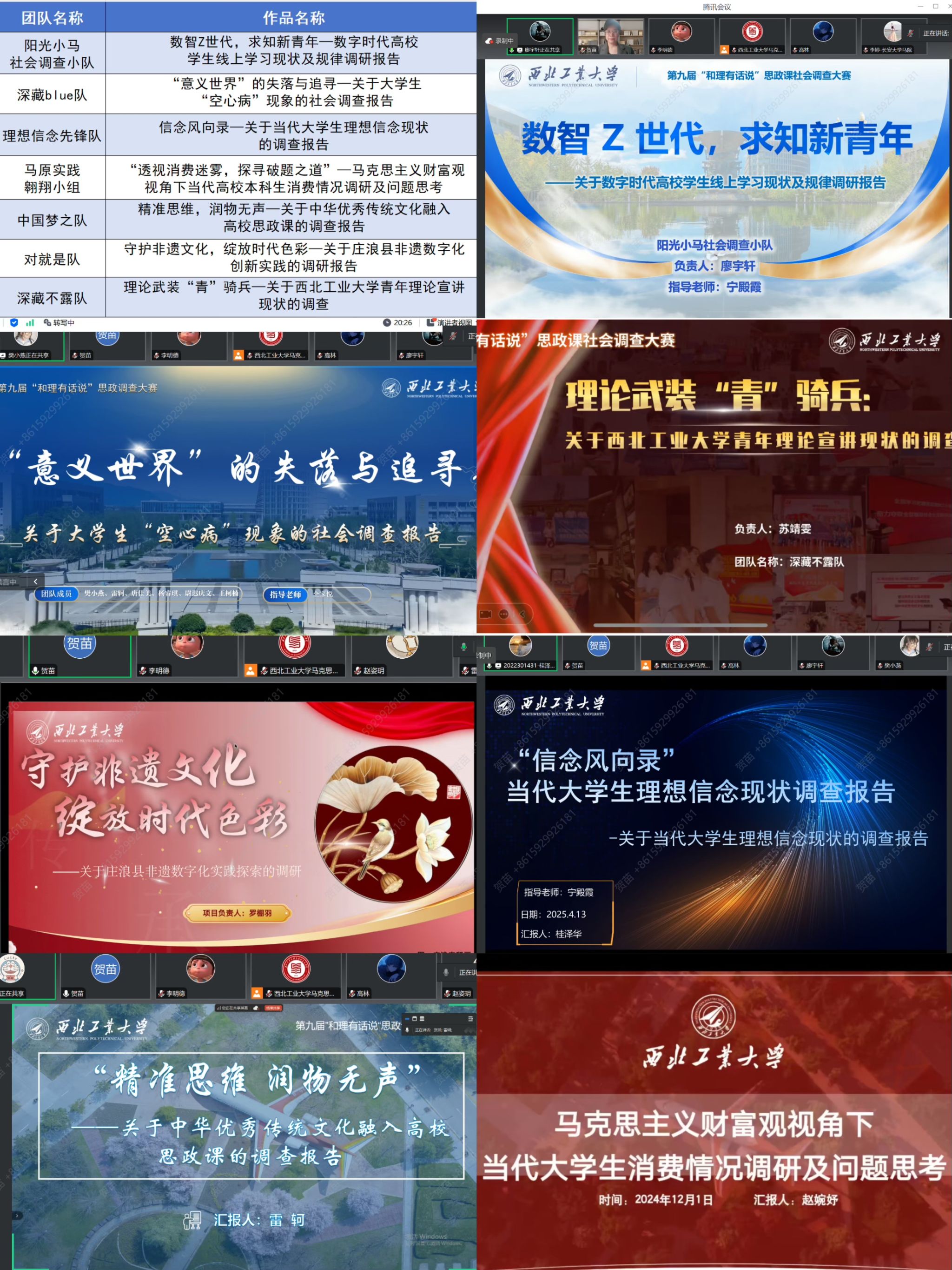 2025年4月13日晚7:00,由PP电子游戏网站党委学生工作部、共青团PP电子游戏网站委员会、PP电子游戏网站教务部、PP电子游戏网站研究生院、PP电子游戏网站PP电子游戏网站、PP电子游戏网站陕西省重点舆情信息研究中心联合举办的第九届“和理有话说”思政课社会调查大赛暨成果展示通过线上形式顺利举办。会议邀请到西安交通大学李明德教授、长安大学李婷教授、PP电子游戏网站党委学生工作部副部长、学生处副处长管峻担任评审专家,会议由PP电子游戏网站副院长、舆情中心副主任贺苗主持。