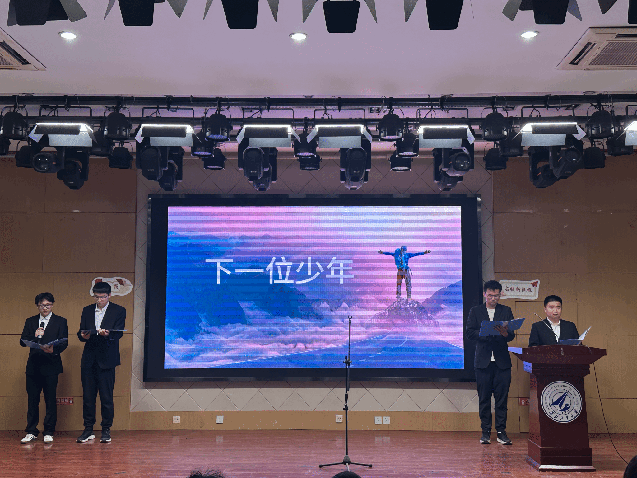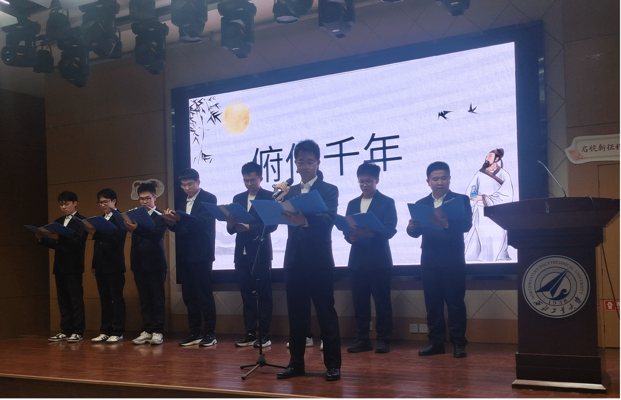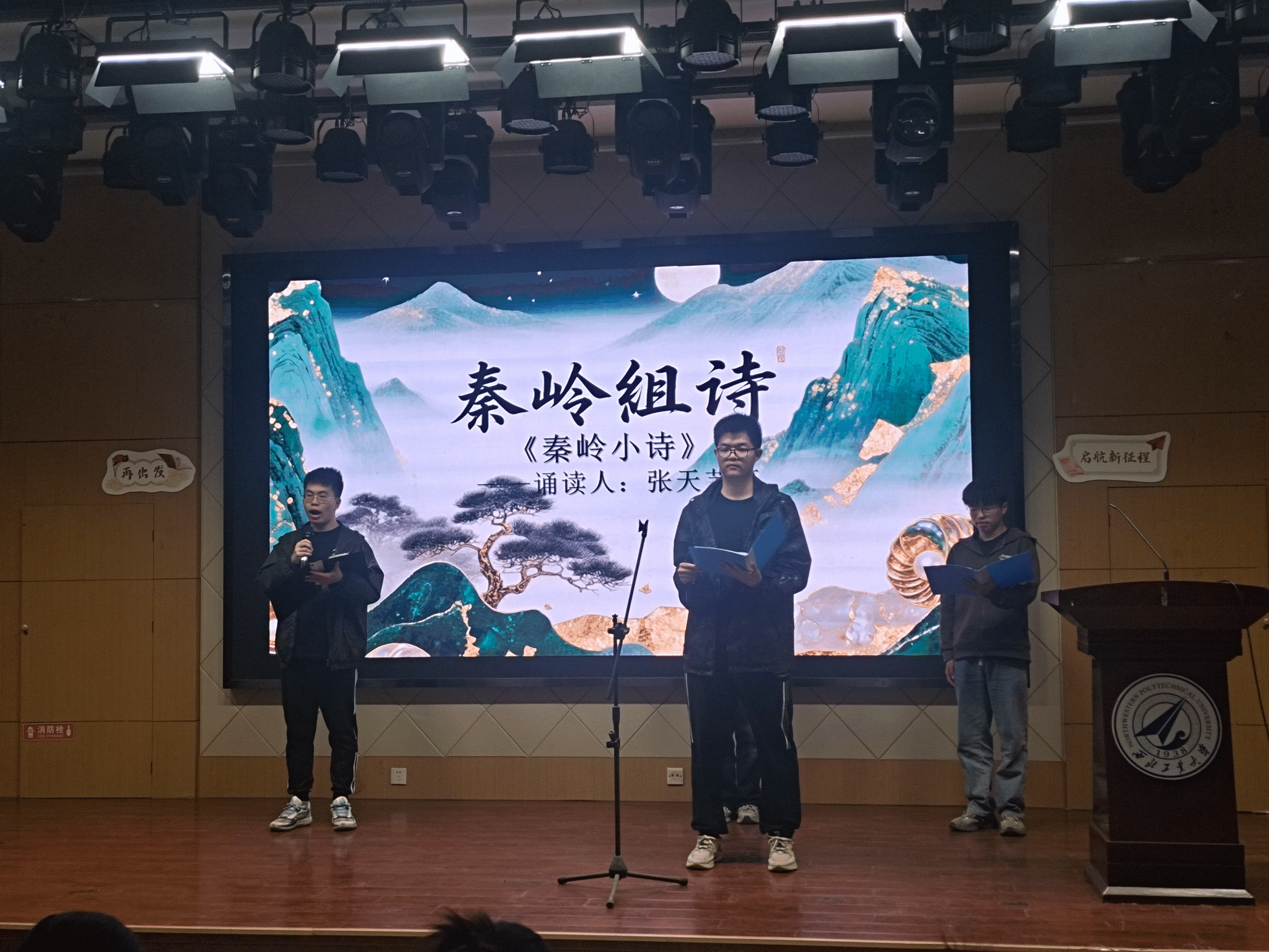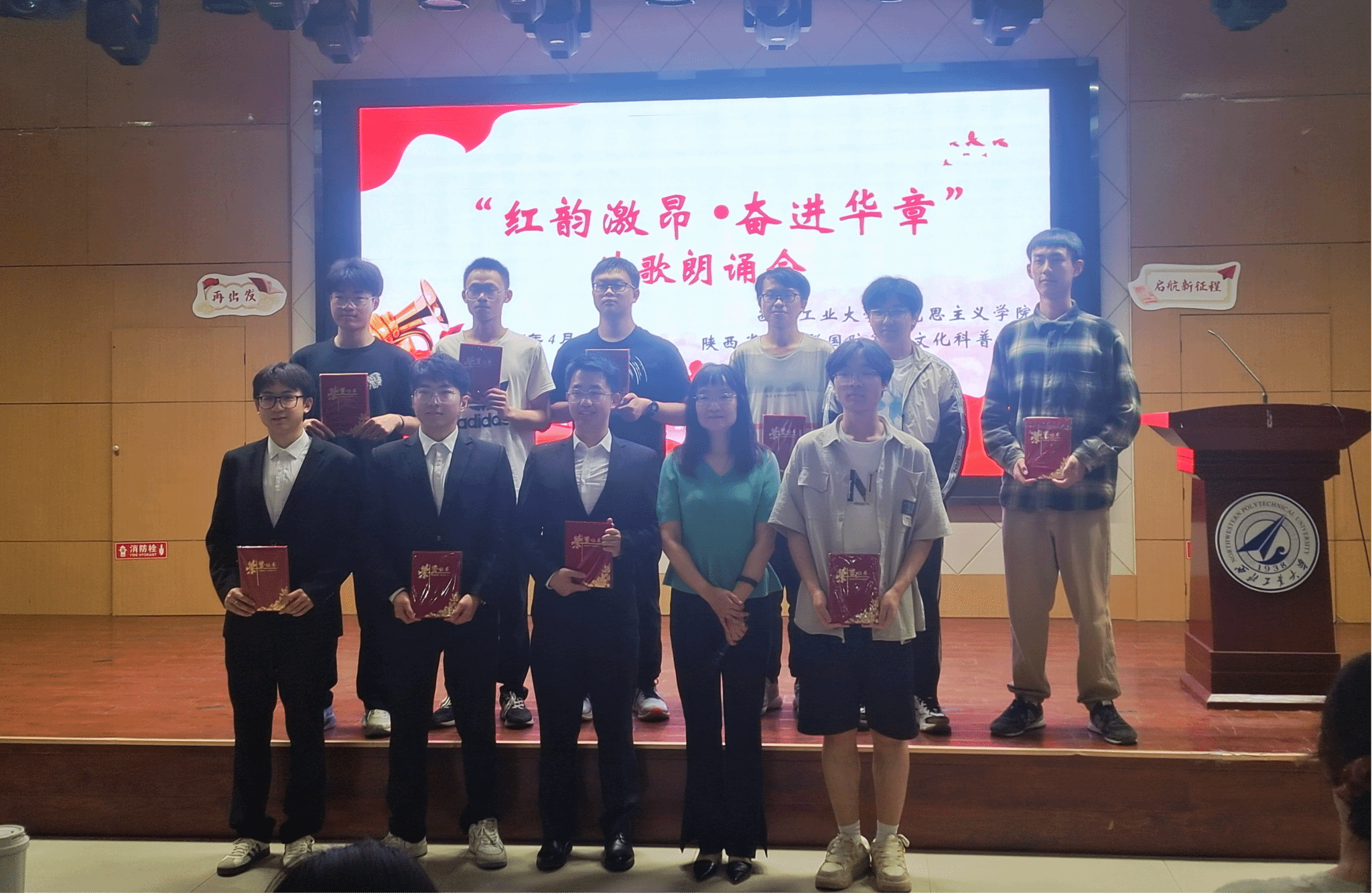 4月19日晚,在PP电子游戏网站207报告厅,参加诗歌朗诵会的同学经过抽签,筛选出来自全校的十个朗诵小组,现场朗诵并表演他们自创的诗歌作品,其余同学提交朗诵视频参赛。这些作品有的抒写家乡建设的成就、生态文明的奇迹,有的讴歌共和国筚路蓝缕的历程、祖国日新月异的巨变,有的表达对科技前辈的尊敬与仰望、科技喜报频传的自豪,有的遥想古路坝灯火、表达今日工大学子进取奋发的豪情,有的抒发青春理想、礼赞科技报国……现场诗声琅琅、同学们激情澎湃,展现出西工大学子奋进向上的昂扬风貌。