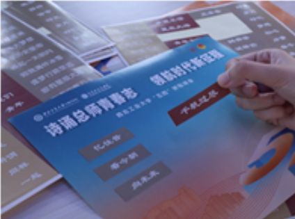 在工作人员引导下领取背景明信片,从拆分后的五四后新诗词组或短语中自由选择素材,自由拼贴属于你的“青春宣言”!作品需融入学校特色(如“总师育人文化”“创新精神”等相关短句),体现西工大学子对五四精神的价值思考和当代传承。完成拼贴后,将所有作品集结为展板并合影留念,形成整体性成果。