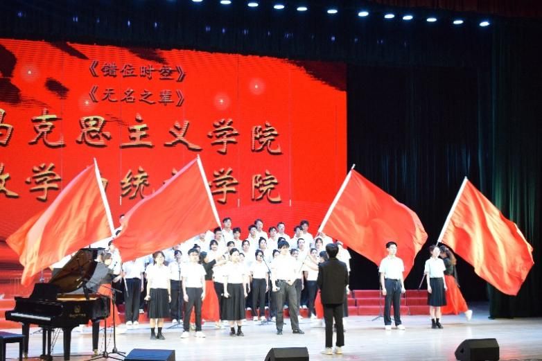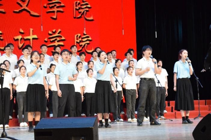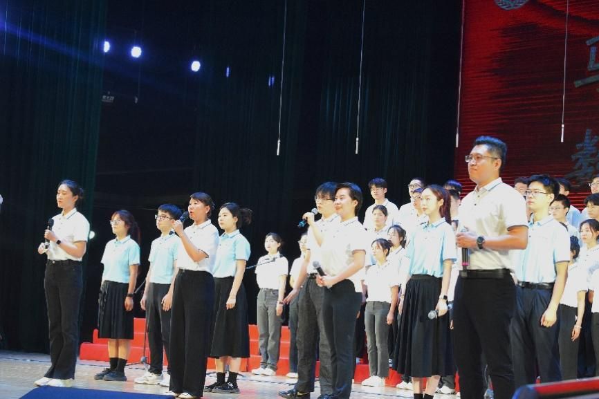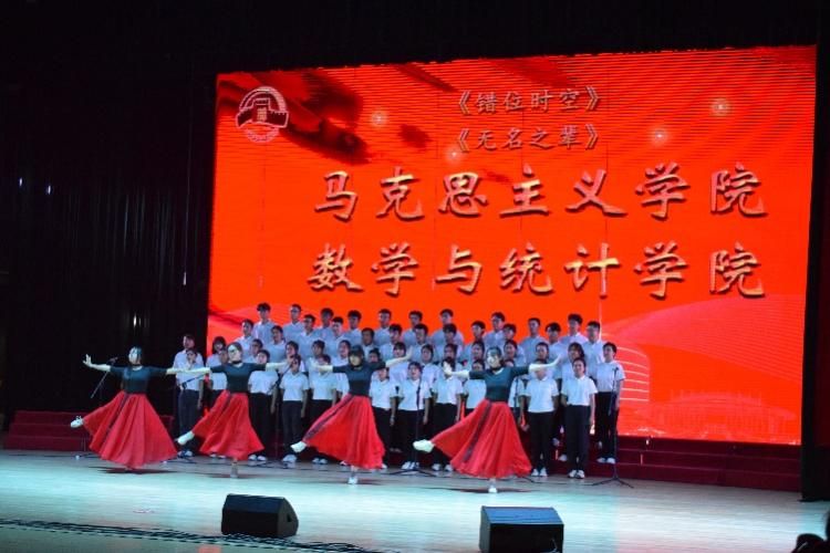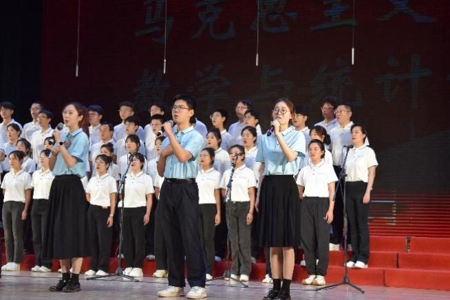 尾声副歌部分迎来情感巅峰,数学与统计学院党委书记王莉、党委副书记张莹和PP电子游戏网站副院长贺苗、党委副书记耿云辉共同登台,以铿锵如金石、深情似涓流的朗诵融入合唱声浪。四位老师饱含深情的朗诵,深情礼赞了平凡奋斗者汇聚的磅礴伟力,极大地鼓舞了在场师生。