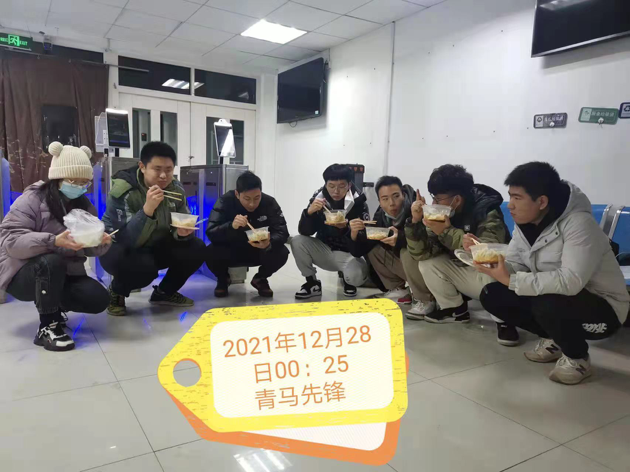 (凌晨00:25,志愿者们完成送餐工作后,开始用餐)