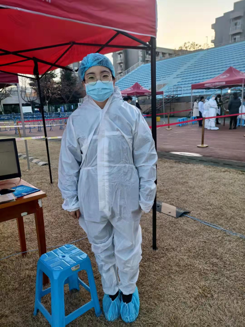 (图为李亚昕同学参与学校核酸检测工作)