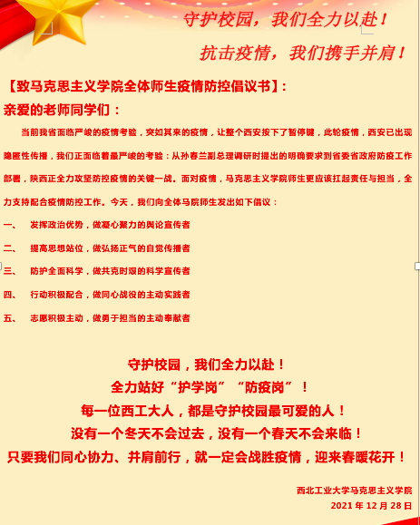 2021年即将结束,正当同学们专心准备考试、迎接新年的时候,新冠肺炎疫情突然袭击西安,扰乱正常的学习和生活节奏。在学校的高度重视和快速反应下,PP电子游戏网站第一时间采取多种措施保障老师和同学们的安全,学院师生积极响应学校号召,在“非必要不离校”的指示下积极投身各项工作,生动展现了当代青马人的风采。