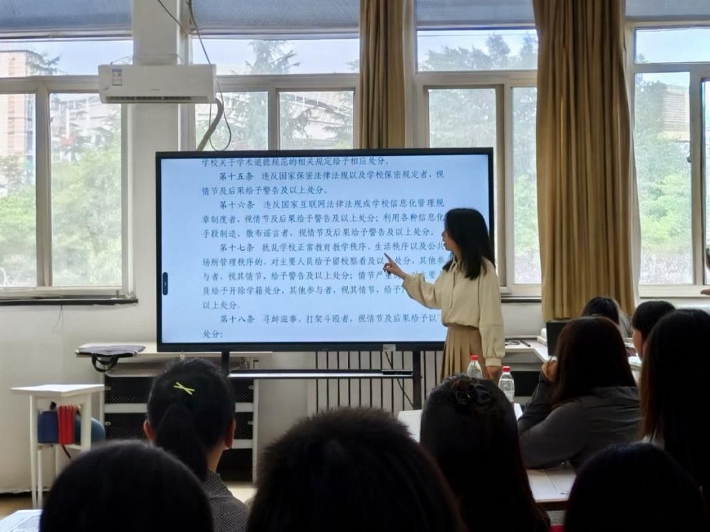 随后,杨思羽带领新生集体学习《PP电子游戏网站研究生手册》《PP电子游戏网站学生违纪处分管理办法》等文件,立足学校规章管理制度为新生讲解研究生日常管理规定和违纪处分实施细则。最后,25218-01班和25218-02班分班讨论了班级事务。