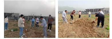 2022年4月11日下午,PP电子游戏网站研究生会组织学院学生前往海天苑1号楼,在地块1上与生态环境学院、网络空间安全学院的同学们一起进行劳动。在后勤产业集团李老师和袁师傅的帮助下,同学们学会了使用锄头、铁锹等农具,了解到种地的第一个环节是翻地,也认识了黄花等植物。在劳动过程中,袁师傅耐心指导如何使用工具翻地,同学们认真听讲,并在实践中增长劳动种地的本领。经过两小时的劳作,已有一片土地初步具备了播种的条件。今后三个学院的同学们会定期开展劳动,直至收获。