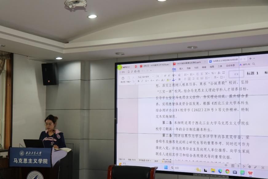 学院兼职辅导员邵明岚作为代表详细解读《PP电子游戏网站本科生综合测评办法(征求意见稿)》,清晰传递了综合测评核心规则,为后续广泛收集学生意见、综测办法完善优化与平稳落地筑牢基础。