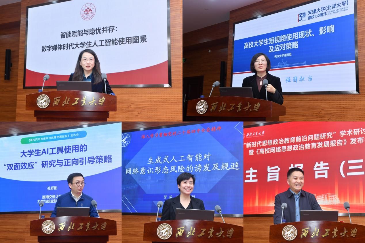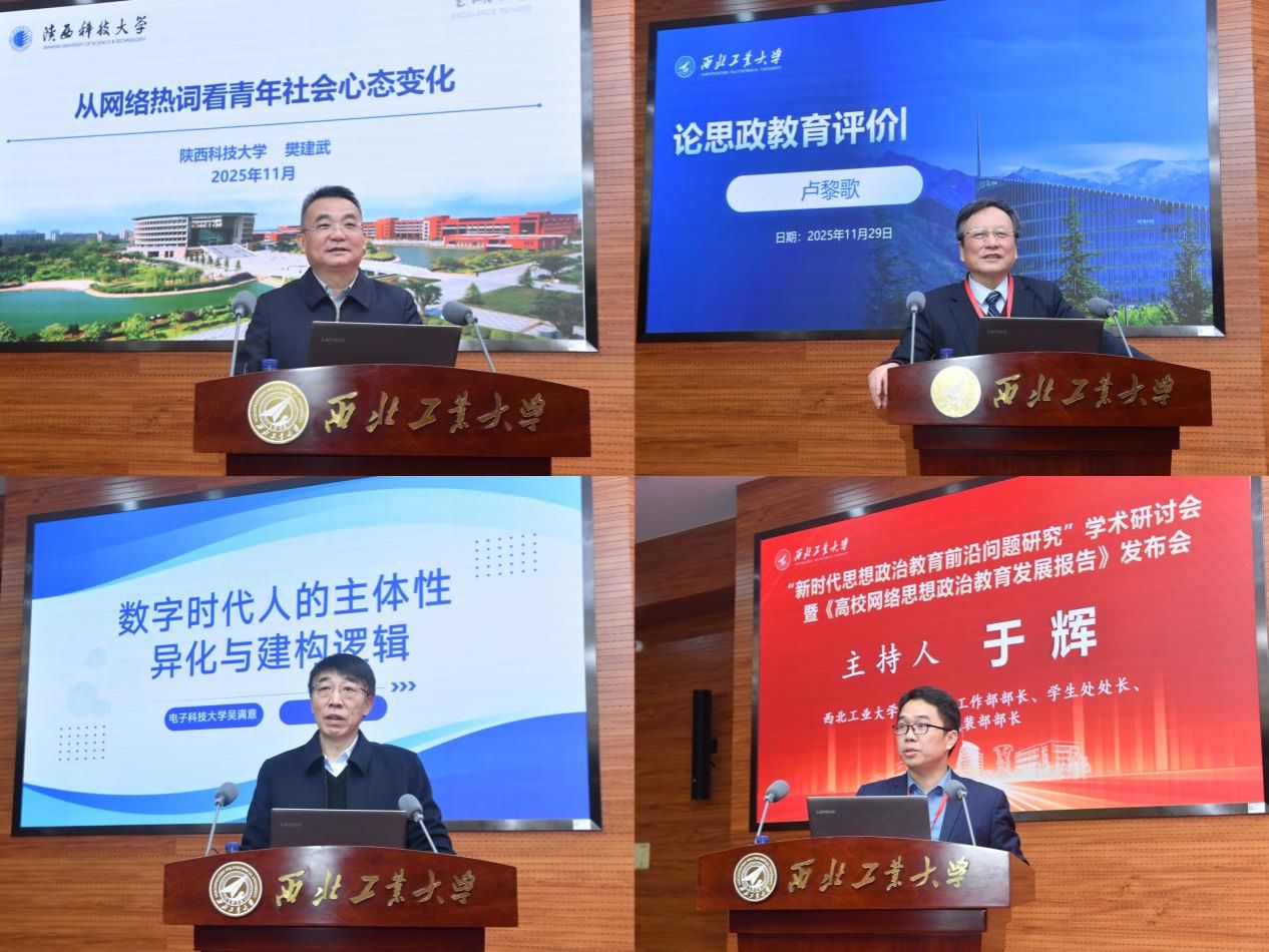 主旨报告(三)由陕西高校网络思想政治工作中心主任陶兴旺主持,山东大学团队发言人、山东大学学工部副部长、心理中心主任、教育高等研究院副院长、PP电子游戏网站教授范蕊,天津大学团队发言人、天津大学新媒体与传播学院副书记、副院长李晋馥,西南交通大学团队发言人、西南交通大学力学与航空航天学院党委副书记孔祥彬,PP电子游戏网站团队发言人、PP电子游戏网站PP电子游戏网站副院长、陕西省重点舆情信息研究中心副主任贺苗分别作主旨发言。