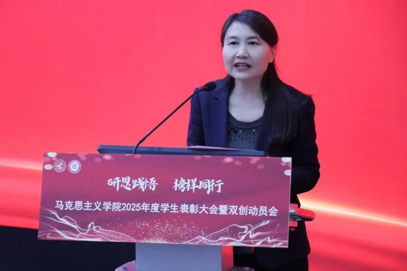 会上,院长杨云霞首先致新年贺词,她回顾了学院2025年在人才培养、学科建设等方面取得的丰硕成果,向全体学生致以新年的美好祝愿,并勉励同学们要坚守“求真”初心、践行“知行合一”、与榜样同行。