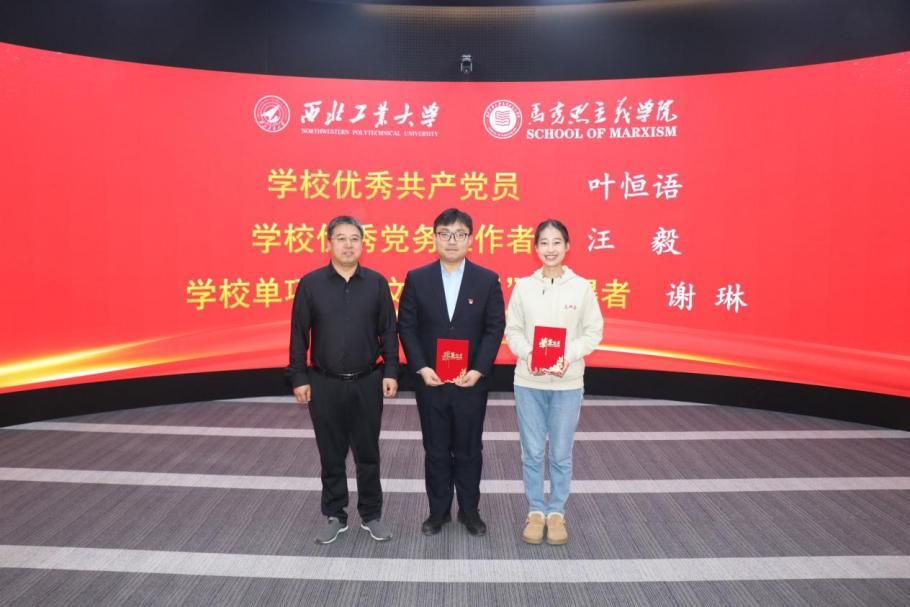 王彦革、赵海霞为党团建设先进集体、先进个人的同学颁奖