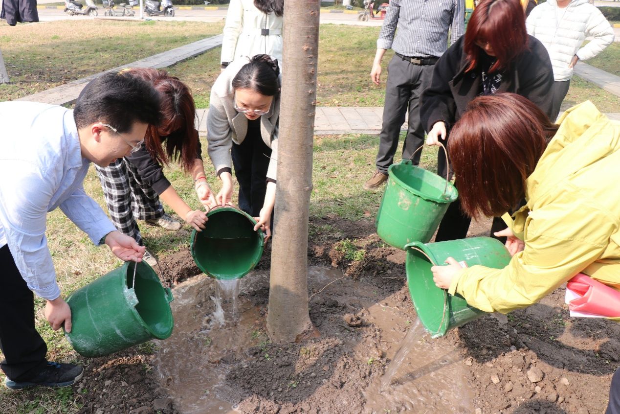 活动现场暖意融融、干劲十足。师生们分工明确、默契协作,挥锹培土、扶苗正干、浇水灌溉,共同种下“劳育之树”“校友之树”“共建之树”。 榉树迎风挺立,扎根沃土,既为春日校园增添了盎然生机,也为即将踏上人生新征程的2026届毕业生,留下了专属的校园青春印记。