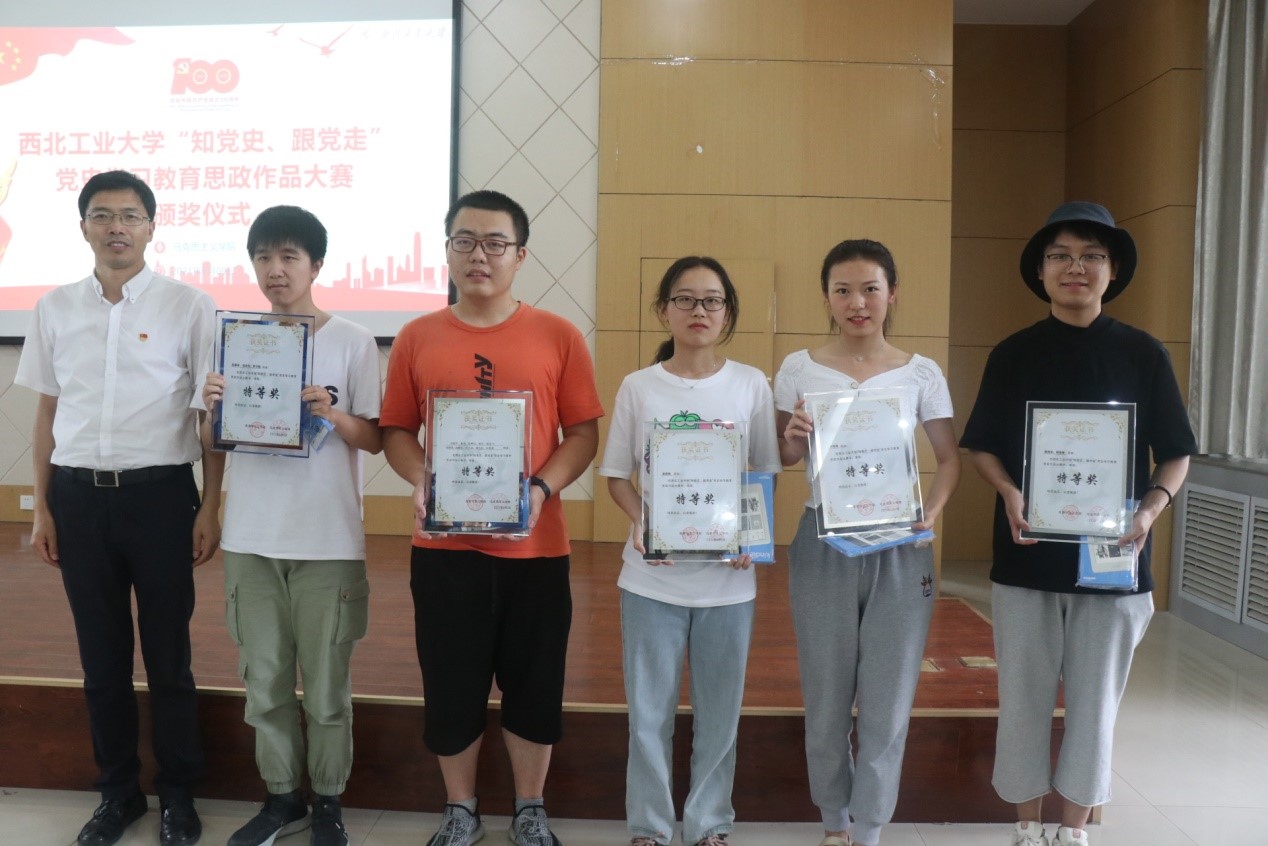 首先,李刚老师对获奖的同学们表示祝贺,对各位老师的到来表示感谢。随后,颁奖仪式正式开始,在坚定有力的《钢铁洪流进行曲》中,山磊老师、贺苗老师为获得三等奖的同学颁奖;张云龙老师为获得二等奖的同学颁奖;吴闻川老师为获得一等奖的同学颁奖;代富平老师为获得特等奖的同学颁奖。本次大赛奖品丰厚,由全校马院思政课教师组织各班同学参与,以讲好党的百年故事为主题制作思政作品,同学们积极报名,踊跃参加,自6月7日起,在学校bilibili官方平台持续展播100期。