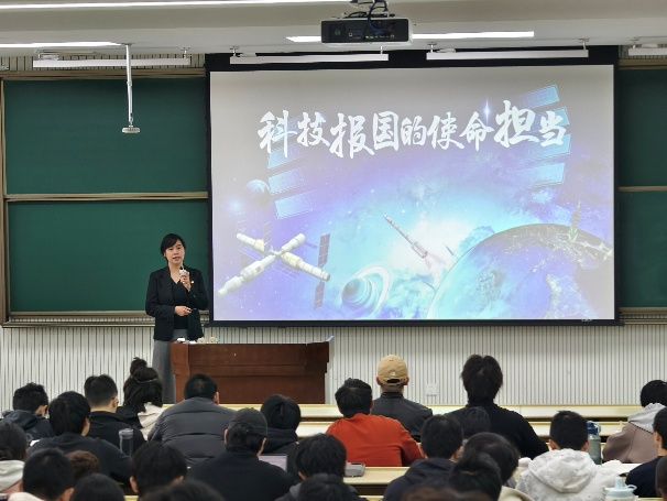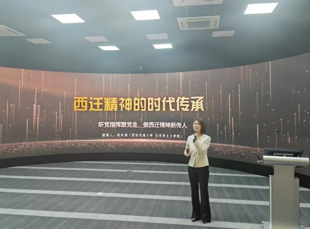 西安交通大学PP电子游戏网站段朱清老师以“西迁精神的时代传承”为题,系统阐释交大师生西迁壮举的历史逻辑与精神内核,强调西迁精神的核心是爱国主义、精髓是听党指挥跟党走,引导青年学生将个人理想融入国家“三航”事业发展大局。