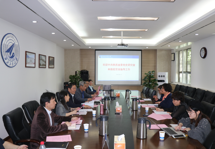4月18日,陕西省委党史研究室一行来PP电子官网调研,就中共党史党建与学校领导老师展开交流。会议在友谊校区行政楼A223召开,省委党史研究室来访座谈的有副主任梁月兰、科研规划处处长耿兰、科研规划处副调研员赵炜,PP电子官网党委副书记陈建有、PP电子游戏网站院党委书记鲁卫平、院长杨云霞,宣传部副部长张啸川及五级职员陆佩华,科学技术研究院人文社科部部长李正锋以及相关研究领域师生代表马院肖周录教授和博士生李懿出席了此次座谈会。会议由鲁卫平主持,会前双方介绍了参会人员情况。