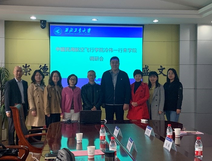 2021年4月15日上午10:00,中国民用航空飞行学院PP电子游戏网站副院长冷伟、院党委副书记秦亚君、办公室主任石荔菠、教研室主任帅刚、辅导员李贞一行5人来学院开展马克思主义理论学科专业建设调研。学院党委副书记李刚、副院长张云龙、办公室主任杜瑶、公共课教学秘书张笑男、行政秘书刘敏热情接待了对方单位人员并在学院楼208开展了调研交流会。会议由党委副书记李刚主持。