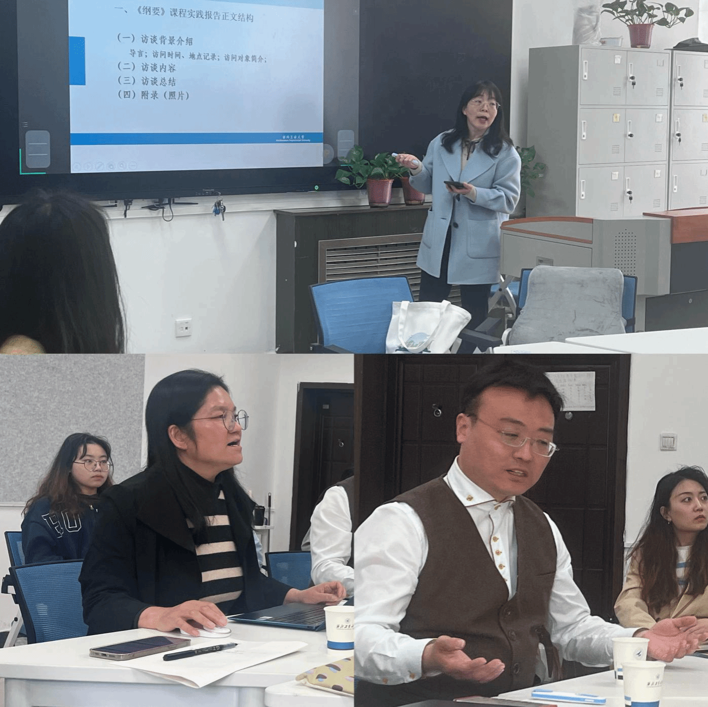 在教研分享环节,汪永平教授阐述了口述史对于承载国家记忆、加深代际沟通、了解社会发展、寻找人生榜样、构建个体生命感悟的重大意义,并对PP电子游戏网站口述史开展现状以及带队调研袁家村、周至水街、东韩村的经历进行了生动细致地介绍,指出口述史活动走入思政课堂,提升了学生的政治认同感,增强了合作精神和实践能力。王欣瑞副教授就口述史调研报告正文结构、问题设计技巧及学生实践报告常见问题进行了深入的分析。她指出口述史区别于其他的学术总结报告的关键特征在于口述史所体现的独特的个体经验,通过细节描摹,使叙事更加生动真实。因此,王老师格外强调附录照片在口述史报告册中的重要性,指出照片本身就是对历史的一种真实记录。房小捷副教授在对以上两位老师进行补充发言的同时,对西安以及PP电子游戏网站现有口述史资源进行了详细的介绍。房老师指出要充分挖掘西安独特的文化资源,如流行摇滚音乐与古典音乐的碰撞;体会经典作家笔下的人物故事,从历史变迁中感悟西安的风土人情;探寻网红城市的培育,打造专属西安的文化IP;关注当前西安城市化迅速发展过程中不同社会阶层面临的境遇变迁;以及聚焦西工大特色,如杰出校友对话、军工资源、高科技项目等。