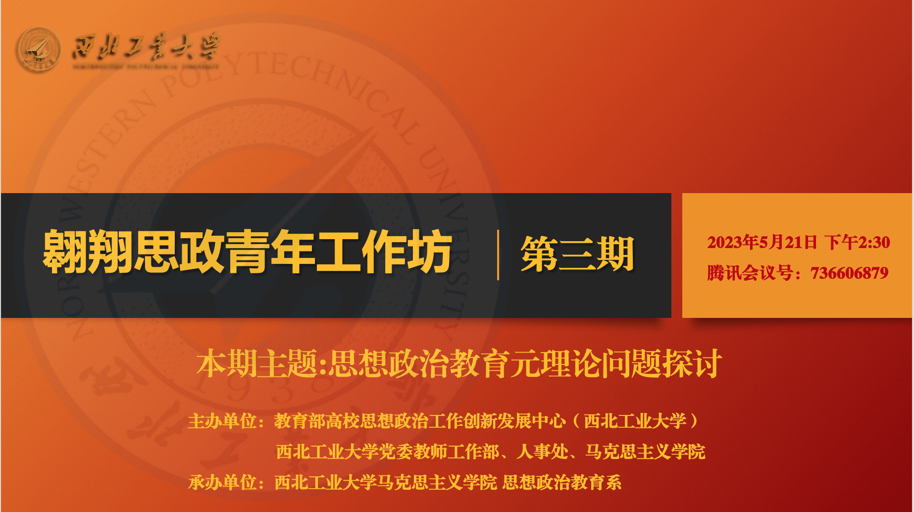 思想政治教育是中国共产党的独特优势和高校各项事业建设发展的中心环节,为夯实与深化思想政治教育学科基础理论的研究,5月21日,PP电子游戏网站PP电子游戏网站翱翔思政青年工作坊(第三期)在线上成功举行。本工作坊由教育部高校思想政治工作创新发展中心(PP电子游戏网站)、PP电子游戏网站党委教师工作部、人事处、PP电子游戏网站主办,PP电子游戏网站思想政治教育系承办。本期工作坊共邀请了五位优秀的青年思政学者,以“思想政治教育元理论问题探讨”为主题,进行观点分享与互评对谈。