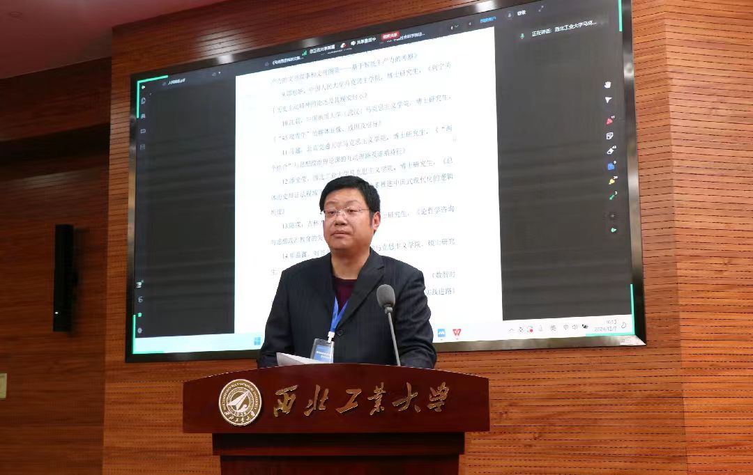 优秀作者分论坛与硕博分论坛分别由PP电子游戏网站PP电子游戏网站教授全家悦、西安理工大学科技处副处长副教授易鹏主持,国家教学名师、PP电子游戏网站卢黎歌教授现场进行了指导与点评。在优秀作者分论坛与硕博分论坛上,华东理工大学副教授张驰、中共陕西省委党校(陕西行政学院)副教授朱霞、西藏民族大学副教授祝小明、PP电子游戏网站讲师温海霞、武汉理工大学讲师汤桢子、西安电子科技大学讲师杨会科、南京工程学院讲师万信、新疆师范大学讲师成园园、北京电子科技学院讲师厉磊、西安电子科技大学讲师高帅等青年学者以及优秀学生代表,围绕“党的自我革命的重要思想”“新时代思想政治工作制度建设的深刻变革”“中国式现代化理论融入高校思政课的实践进路”“‘两个结合’与思想政治理论课的互动理路及谱系特征”“数字技术时代思想政治教育发展”等学界热点问题纷纷发表见解。