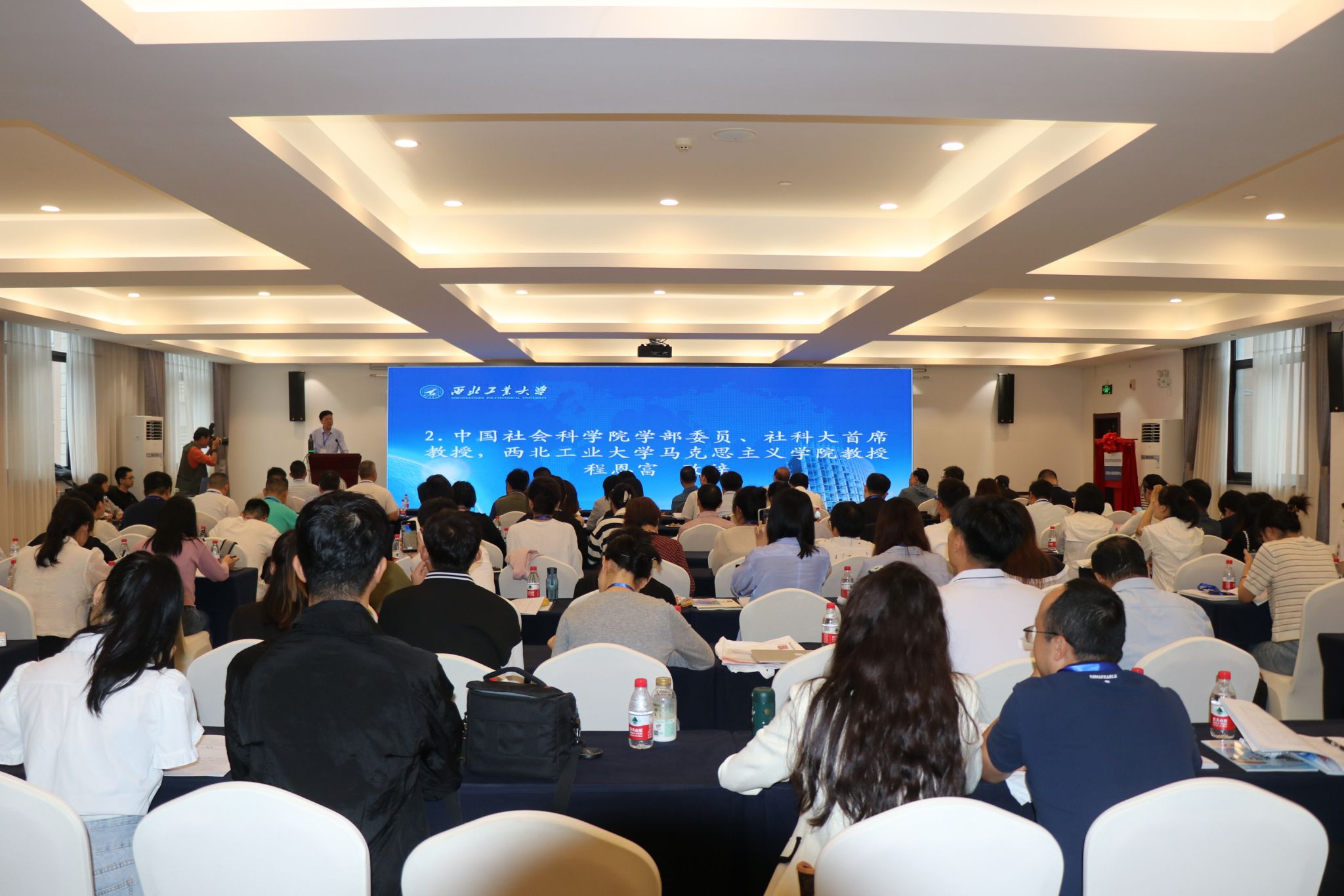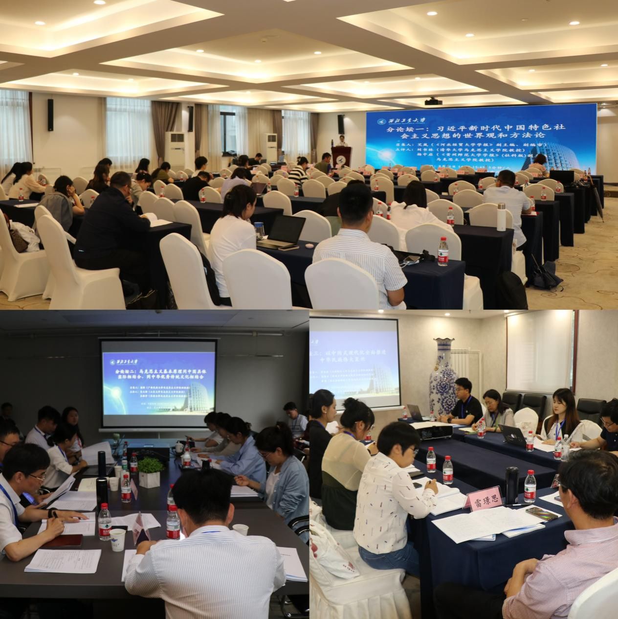 2023年8月26日,由陕西(高校)哲学社会科学重点研究基地、PP电子游戏网站科学技术研究院、PP电子游戏网站社会科学界联合会、PP电子游戏网站主办,《政治经济学研究》《海派经济学》《PP电子游戏网站学报(社会科学版)》《河北经贸大学学报》《世界马克思主义研究》协办的推进马克思主义中国化时代化学术论坛暨陕西(高校)哲学社会科学重点研究基地“马克思主义创新发展研究中心”成立研讨会在PP电子游戏网站顺利举行。来自中国社会科学院、清华大学、北京大学、中国人民大学、上海交通大学、复旦大学、山东大学等30余所高校、科研机构的专家学者,以及高校师生100余人参加了本次论坛。设有开幕式、主旨发言、大会发言和分论坛讨论及汇报、闭幕式等环节。