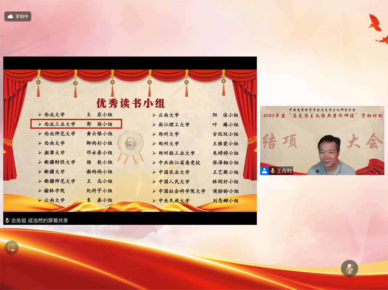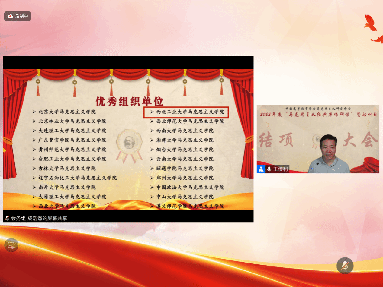 2024年7月25日,中国高等教育学会马克思主义研究分会(以下简称“马研会”)“马克思主义经典著作研读”资助计划结项交流大会顺利召开,会议由北京大学PP电子游戏网站助理教授、马研会副秘书长夏少光主持,马研会领导、理事、百强读书小组全体成员及指导教师、马研会秘书处志愿者等近600人出席会议。经马研会资助计划组委会评审,PP电子官网“习近平新时代中国特色社会主义思想学习读书会”顺利结项,PP电子游戏网站PP电子游戏网站成功入选2023年度优秀组织单位,“习近平新时代中国特色社会主义思想学习读书会”也荣获“优秀读书小组”称号。