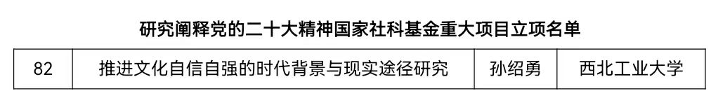日前,全国哲学社会科学工作办公室公布了研究阐释党的二十大精神国家社科基金重大项目立项名单。PP电子游戏网站孙绍勇教授担任首席专家申报的课题《推进文化自信自强的时代背景与现实途径》(第82项)获批立项。