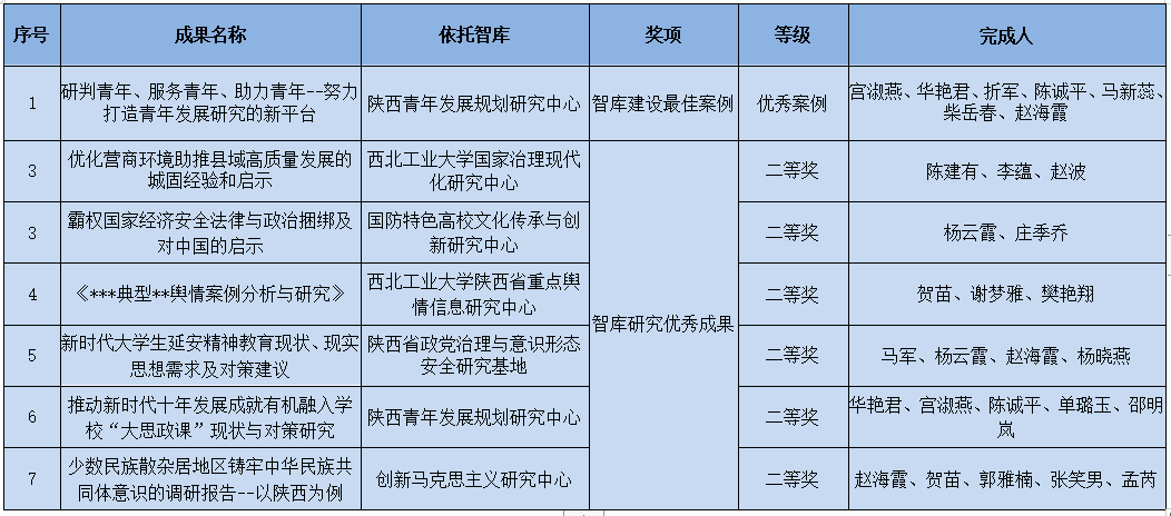 PP电子官网PP电子游戏网站1项智库案例被评为优秀案例,六项智库成果获二等奖。《研判青年、服务青年、助力青年--努力打造青年发展研究的新平台》获得2023CITT智库建设优秀案例。《优化营商环境助推县域高质量发展的城固经验和启示》《霸权国家经济安全法律与政治捆绑及对中国的启示》《***典型**舆情案例分析与研究》《新时代大学生延安精神教育现状、现实思想需求及对策建议》《推动新时代十年发展成就有机融入学校“大思政课”现状与对策研究》《少数民族散杂居地区铸牢中华民族共同体意识的调研报告--以陕西为例》,均获得智库研究优秀成果二等奖。