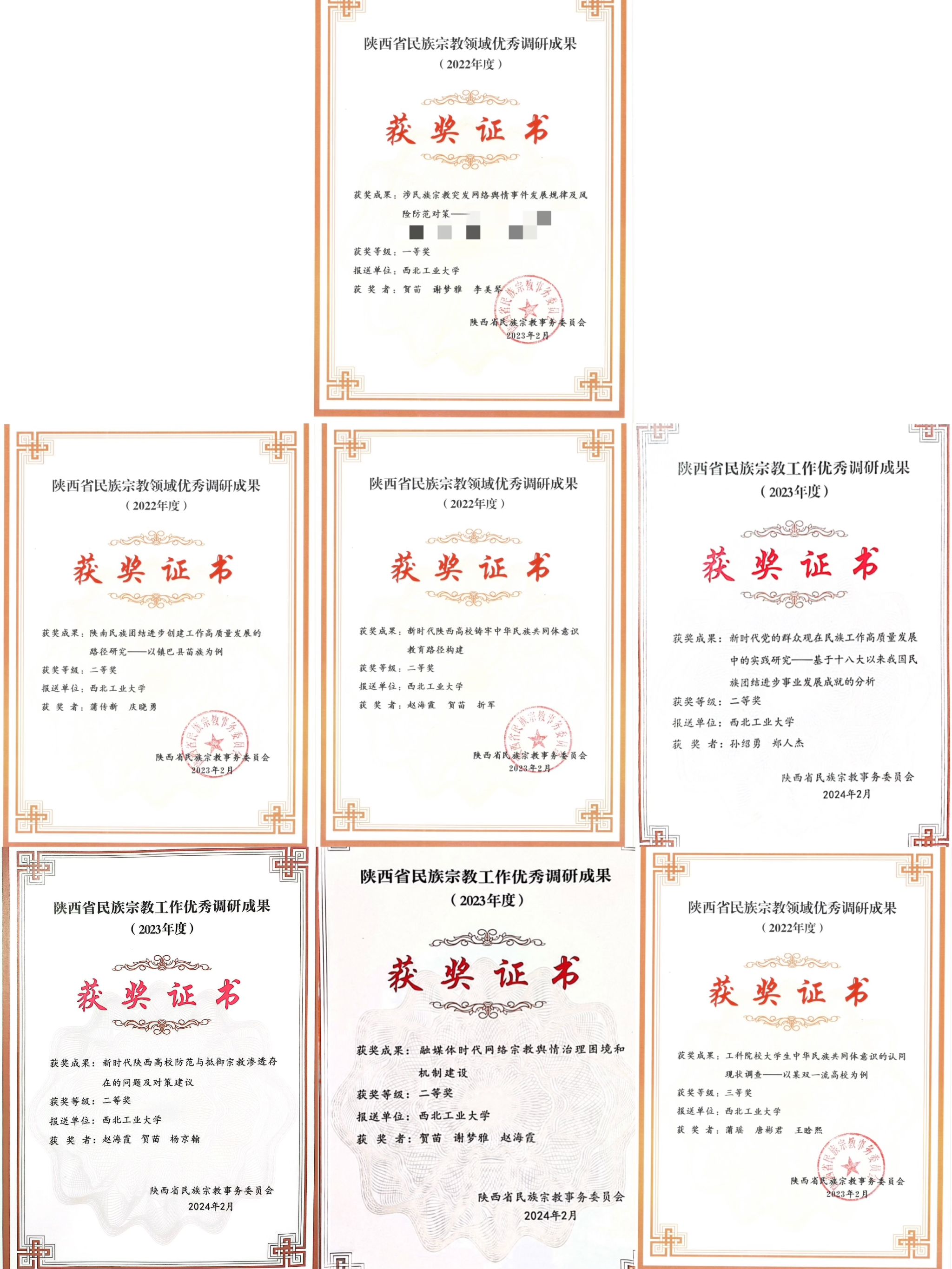 2024年初,陕西省民族宗教事务委员会公布了近2年民族宗教工作优秀调研成果获奖名单。PP电子官网PP电子游戏网站2022、2023两年共7项成果入选,其中一等奖 1项、二等奖 5项、三等奖1项。