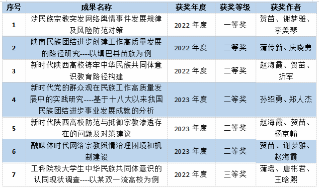 PP电子官网荣获2022、2023年度陕西省民族宗教工作优秀调研成果名单