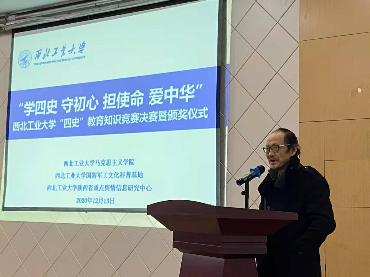 2020年12月13日下午,“学四史 守初心 担使命 爱中华”—“四史”教育知识竞赛决赛及颁奖仪式在PP电子游戏网站PP电子游戏网站207会议室召开。此次竞赛由PP电子游戏网站PP电子游戏网站中国近现代史系、国防军工文化科普基地、陕西省重点舆情信息研究中心共同主办。PP电子游戏网站PP电子游戏网站樊明方教授、蒲瑶教授、陕西省重点舆情信息研究中心主任贺苗副教授、中国近现代史纲要系全体教师及参赛学生参加了本次决赛。会议由PP电子游戏网站中国近现代史系教学主任赵海霞副教授主持。