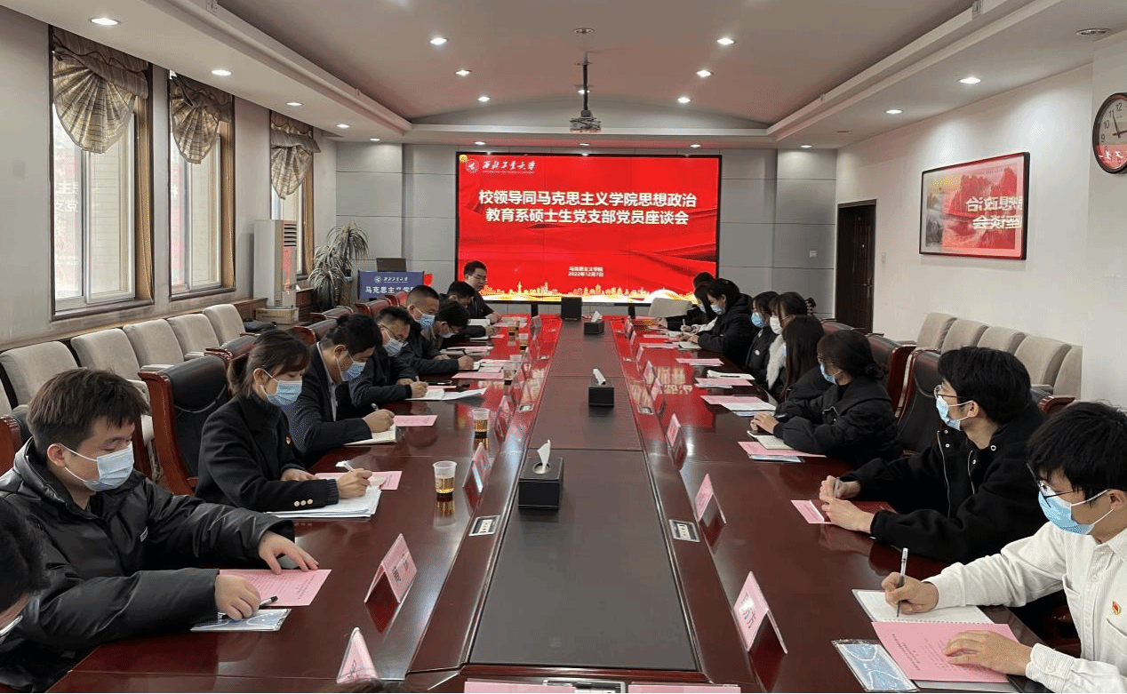 2022年12月7日上午,PP电子游戏网站党委副书记、纪委书记吕卫东来到PP电子游戏网站思想政治教育系硕士生党支部,同支部党员、发展对象和入党积极分子进行座谈交流。学院党委副书记(主持工作)蒲传新、党委副书记李刚、团委书记王换、博士生辅导员高红波一同参加会议。会议由思想政治教育系硕士生党支部书记张昊主持。