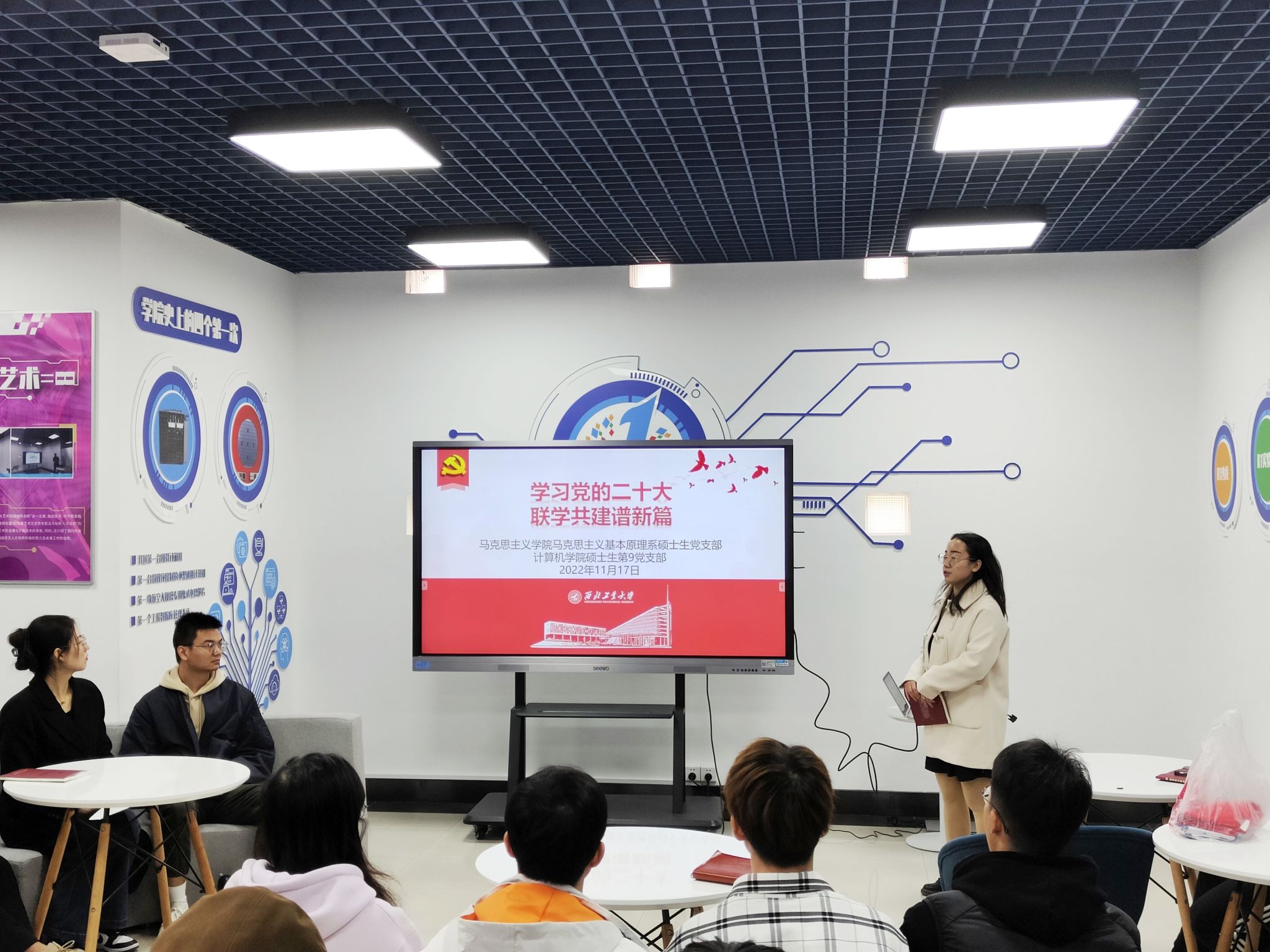 为深入学习贯彻党的二十大精神,在学生党员中掀起学习热潮,进一步推动党的二十大精神入脑入心、落实落地,PP电子游戏网站PP电子游戏网站马克思主义基本原理系硕士生党支部和计算机学院研究生第九党支部联学共建,11月17日10点在计算机学院党员活动室开展“学习党的二十大,联学共建谱新篇”主题党日活动,本次会议由马克思主义基本原理系硕士生党支部书记王慧新主持。