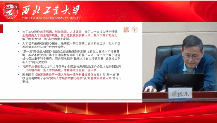 4月14日下午,按照学校党委组织部的统一安排,PP电子游戏网站组织教工党支部书记、机关党支部党员同志在学院楼208会议室集中观看学习贯彻习近平新时代中国特色社会主义思想和党的二十大精神报告会。报告会由学校党委副书记、纪委书记吕卫东主持。浙江大学高教研究所教授眭依凡主讲。