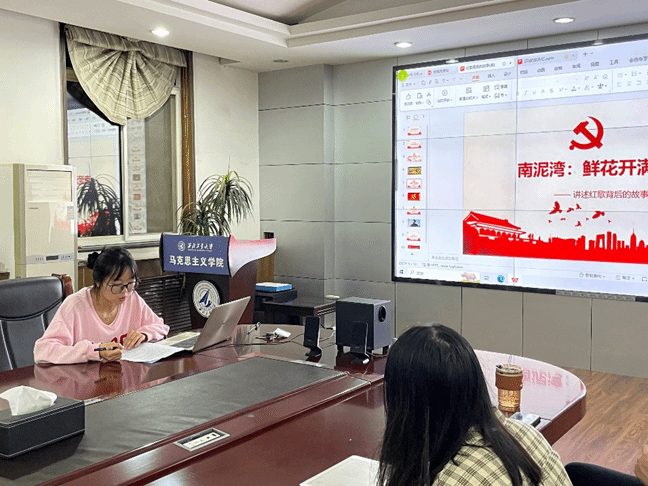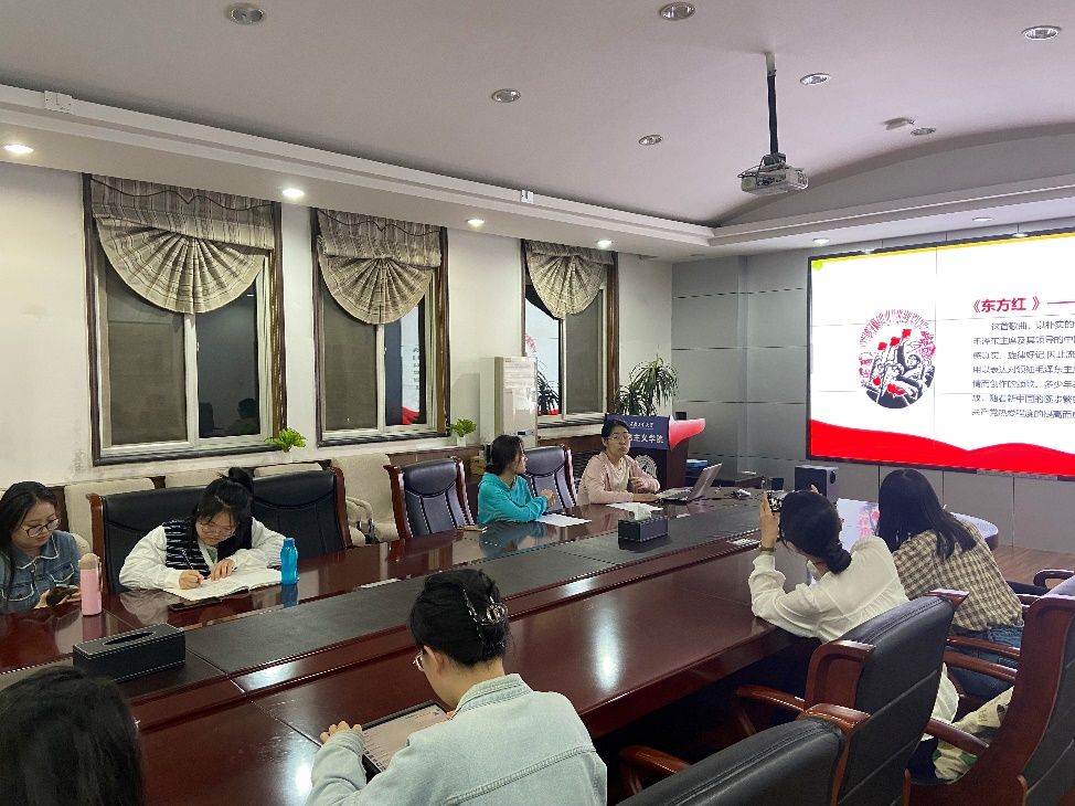 活动伊始,由马克思主义中国化研究系硕士生、青马先锋宣讲团成员邵明岚面向参会同志讲述了歌曲《东方红》背后的故事,将歌曲中人民群众对伟大领袖毛泽东主席及其领导的中国共产党的深情娓娓道来,配合视频呈现出《东方红》这一浓缩了代代中国人情感记忆的经典作品的深厚力量。