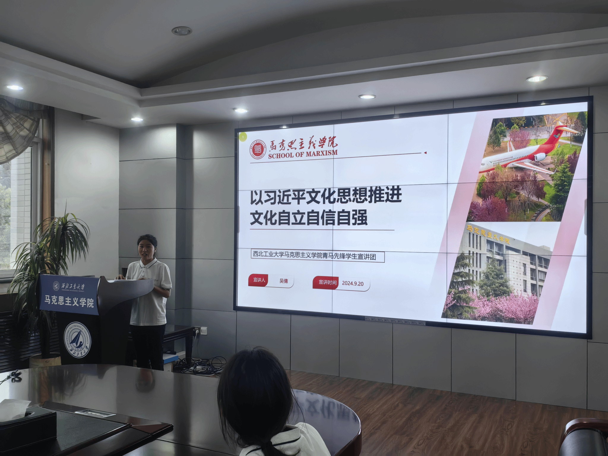 接着,PP电子游戏网站PP电子游戏网站青马先锋学生宣讲团两位成员分别进行主题宣讲。吴倩同学以《以习近平文化思想推进文化自立自信自强》为题,围绕巩固文化主体性、讲好中国故事、推进“两个结合”、高质量推进特色育人文化建设四个方面进行阐述。谢琳同学以《自觉做勇于担当作为的不懈奋斗者》为题,结合何功伟、廖俊波、陈士橹的先进感人事迹,阐释了自己对新时代青年责任担当的思考和理解。