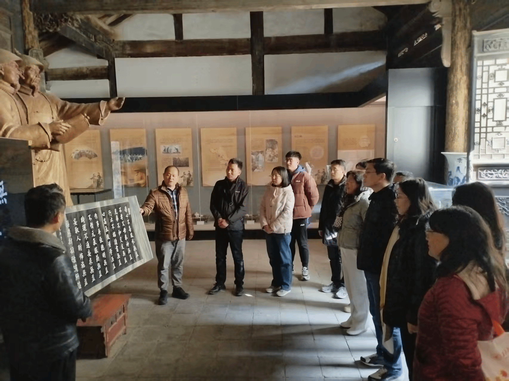 在蒲城林则徐纪念馆,党员教师们认真学习了林则徐“慎独、慎微、慎权”的廉政精髓与“兴水利、重民生、促团结”的治理智慧。纪念馆以300余件历史文物、600余幅图片及大量文史资料,生动展现了林则徐的生平事迹和在陕活动,再现了林则徐和王鼎、王益谦的生死情谊和君子之交,帮助教师们充分理解了林则徐“苟利国家生死以,岂因祸福避趋之”的爱国精神和责任担当。在林则徐、王鼎塑像前,馆长组织教师们诵读了林则徐的“十无益”格言,使教师们感受到了民族英雄的自律品格,也体会到其中深厚的教育意义。在凤凰抱厦八卦亭下,党员教师们围绕“新时代思政课教师如何涵养廉洁师德”的主题展开现场研讨,一致认为要以林则徐、王鼎、王益谦等先贤为镜,将廉洁自律融入教学科研全过程,在言传身教中培育学生的道德情操与家国情怀。