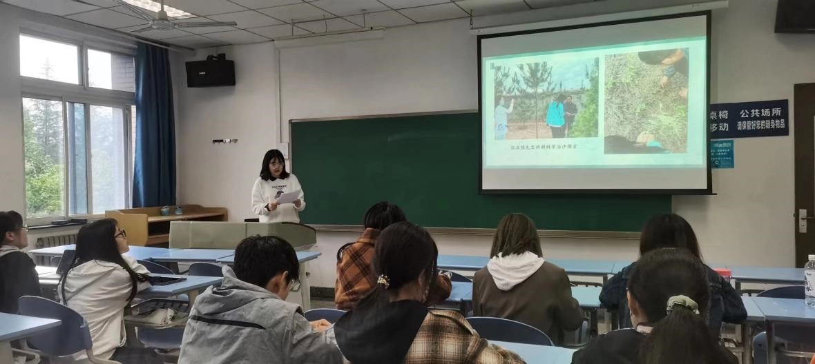卢逸宁同学首先从技术角度向我们介绍了草方格工程等防风固沙的科学成果,融合榆林靖边牛玉琴将自己一生都献给沙漠的故事:消失的沙丘,成片的绿荫见证了她的年华流逝,漫漫黄沙在她一生的努力下终于汇聚成大片的绿色。感悟到成果的背后,是几代人的坚守,是他们用愚公移山般的意志力让“沙魔”在这里望而却步。用他们的青春与智慧在沙漠中,扎出一道道绿色的屏障。如今的榆林天很蓝,路很长,日子很平凡,他们却一直在路上。