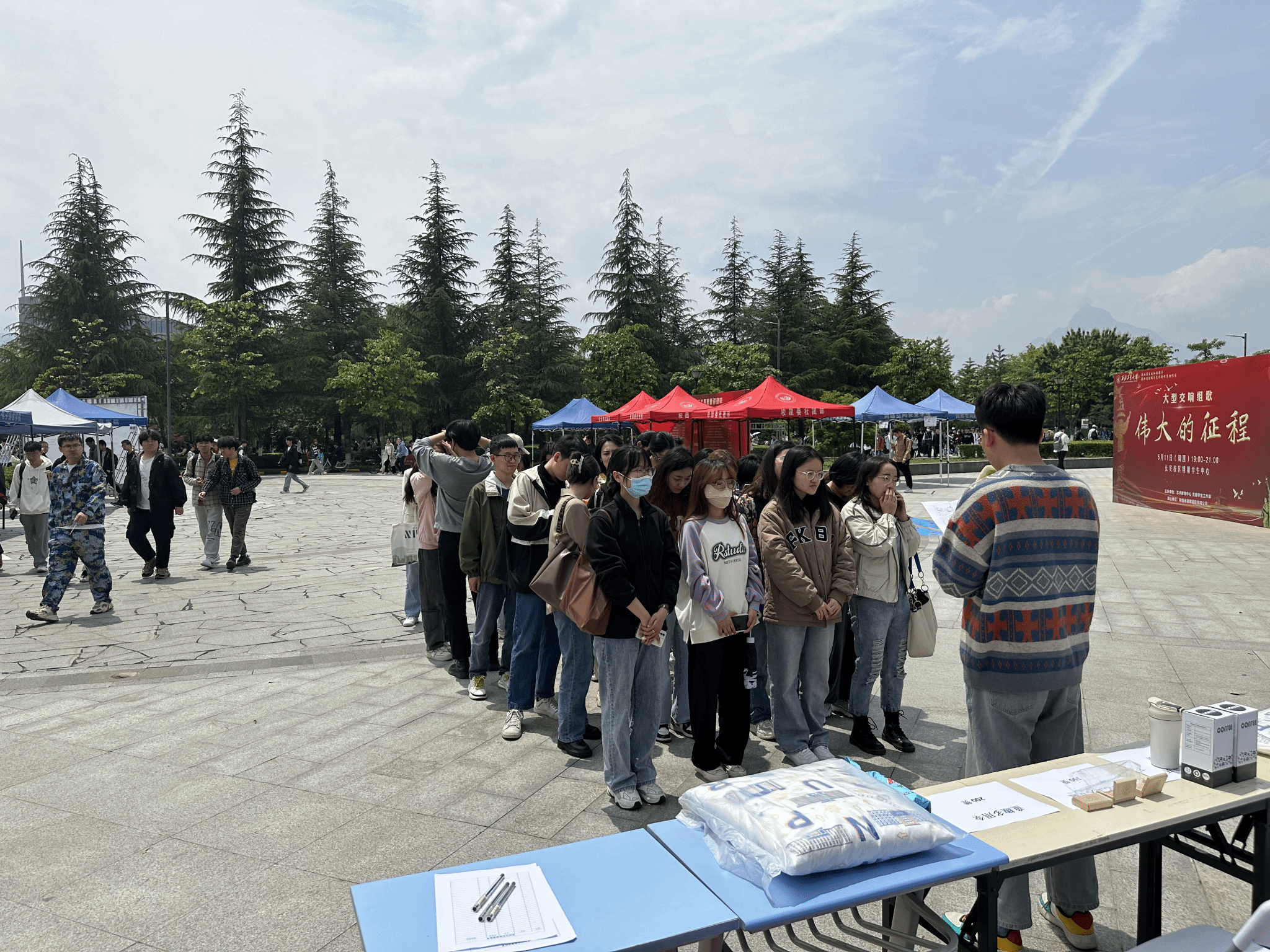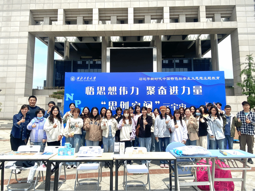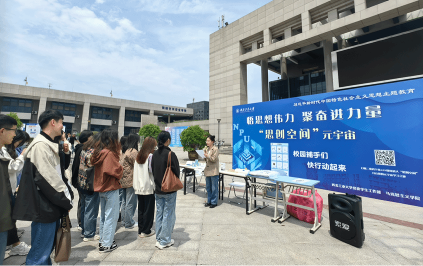 2023年5月8日中午,PP电子游戏网站党委学生工作部、学生处,PP电子游戏网站在长安校区翱翔学生中心广场前,举办了“思创空间”启动仪式,深邃海军蓝展板上“悟思想伟力,聚奋进力量”十个大字让同学们纷纷驻足参与。