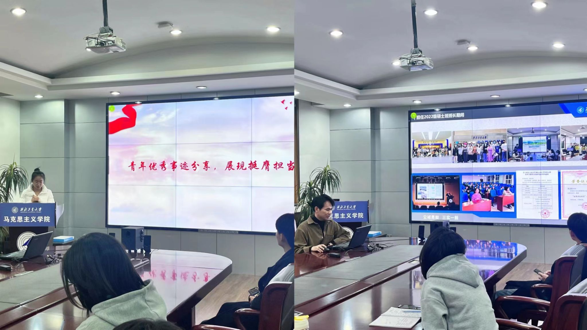 团日活动第三项,PP电子游戏网站挺鹰担当先进学生代表从自身学习、工作、生活出发分享个人事迹。中国近现代史基本问题研究系团支部书记杨京翰讲述了担任学院2022级硕士班班长以来的工作成效和工作感想,2023级硕士生樊小燕分享了在学院担任助管工作中的点点滴滴。在场每位青年团员都认真聆听,在对标支部优秀团员的过程中找寻自身不足,涵养进取品格。