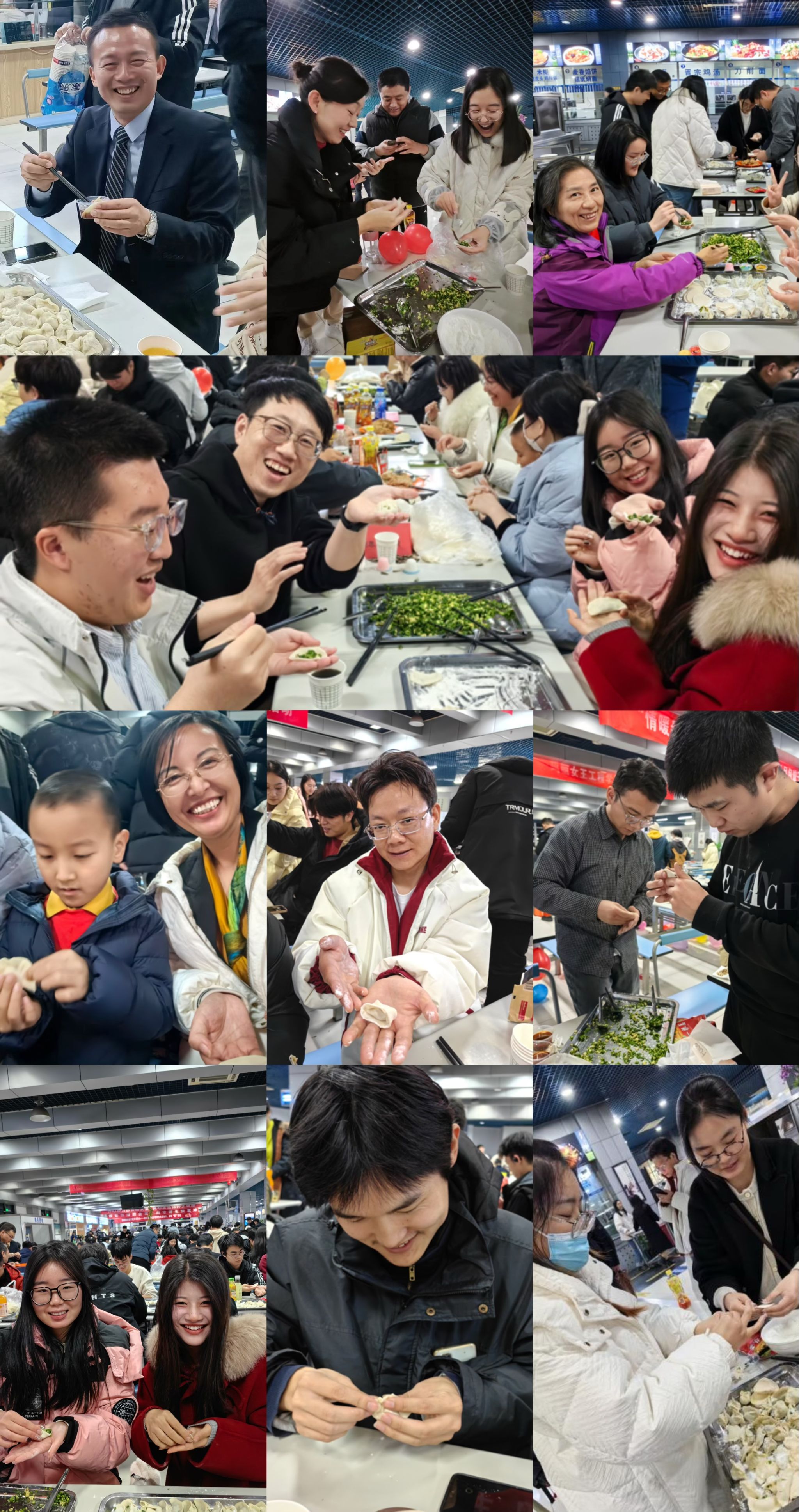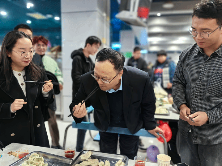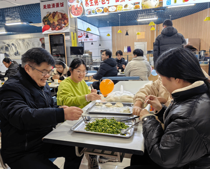学院党委书记蒲传新老师、党委副书记李刚老师、武婉珍老师、班主任宁殿霞老师、博士生辅导员高红波老师、硕士生辅导员王换老师、班主任吕焰老师与同学们欢聚一堂,就如何包饺子、如何包好饺子展开了细致的“研究”,在交流中增进了生活本领,欢声笑语不断,师生情渐浓。